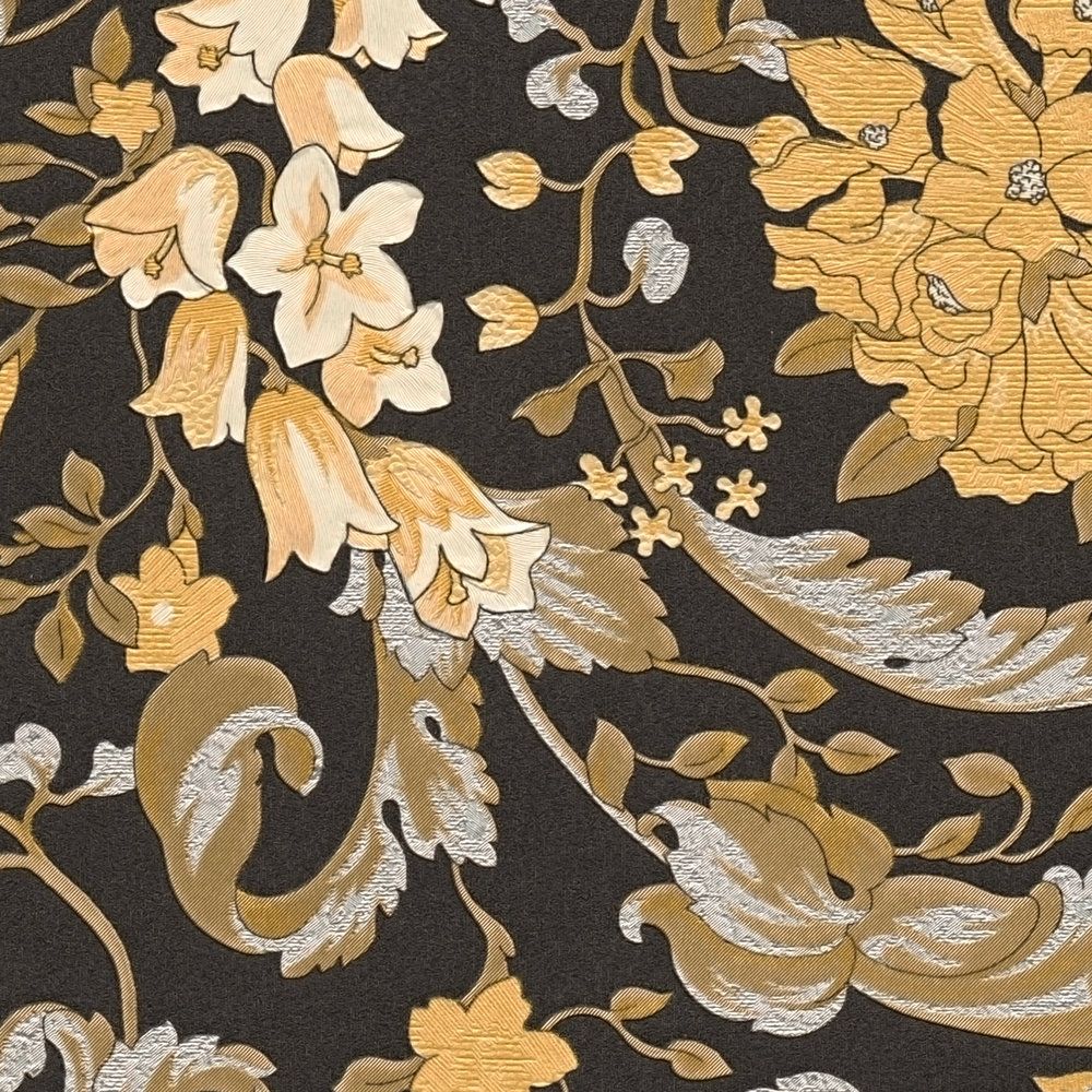 Barocco Floral Black & Gold Luxury Vinyl Wallpaper 387065