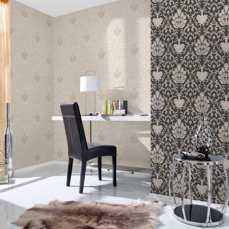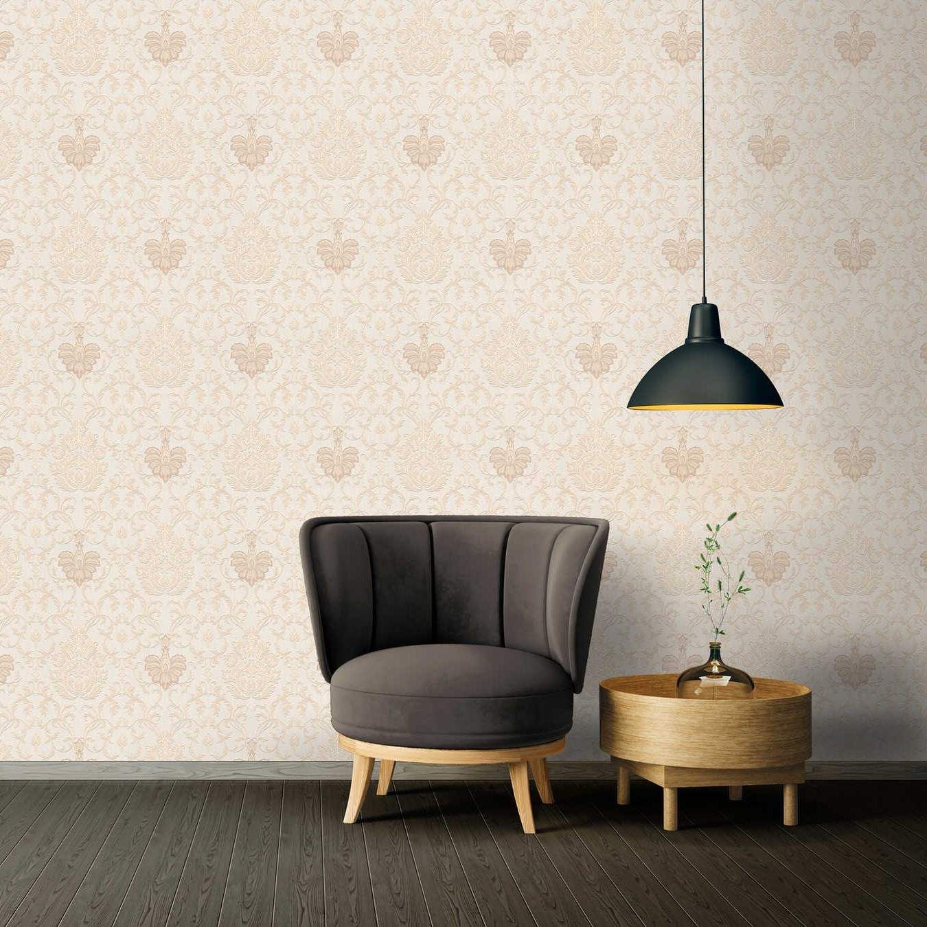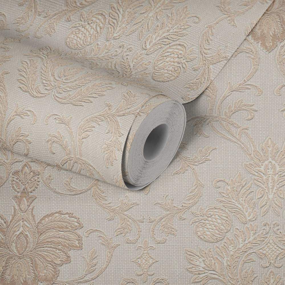 Exquisite, stylish and elegant. This Belle Baroque inspired wallpaper features a classical damask themed print. Held together on a matt weave effect background, with elements of glitter sprinkled above print. Please purchase a sample for true colour and texture.