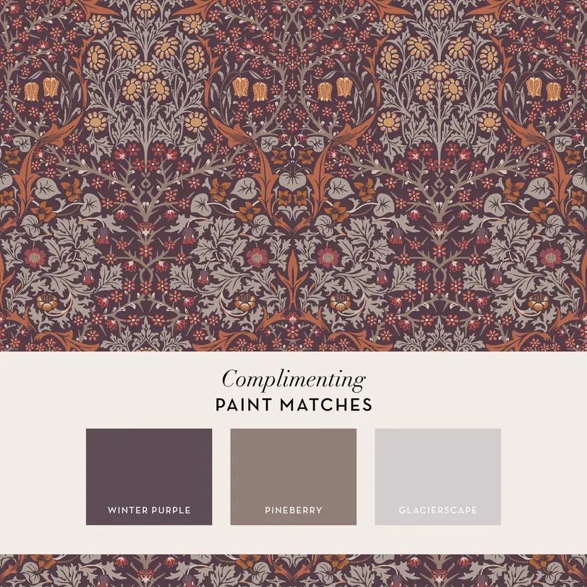 Blackthorn Violets & Meadow Flowers Plum Wallpaper by William Morris 124249