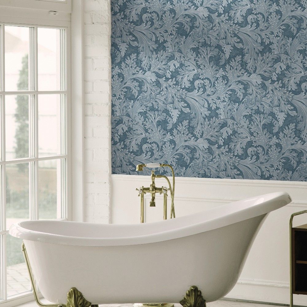 Botanical Scroll Navy Blue Curling Leaves Wallpaper 13721