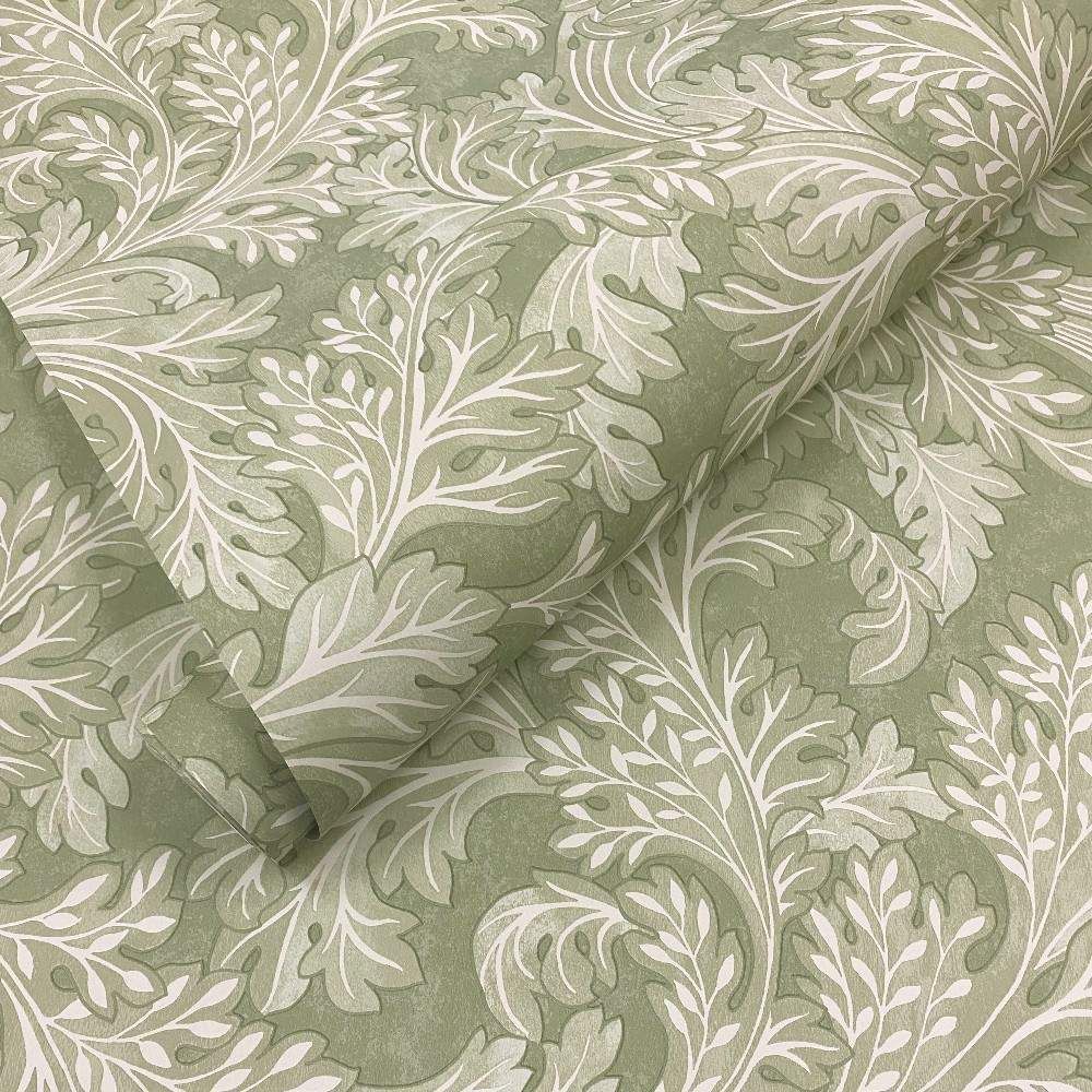 Botanical Scroll Sage Green Curling Leaves Wallpaper 13720