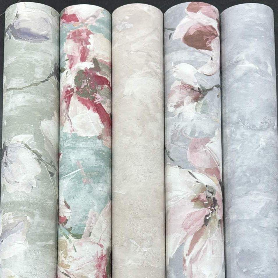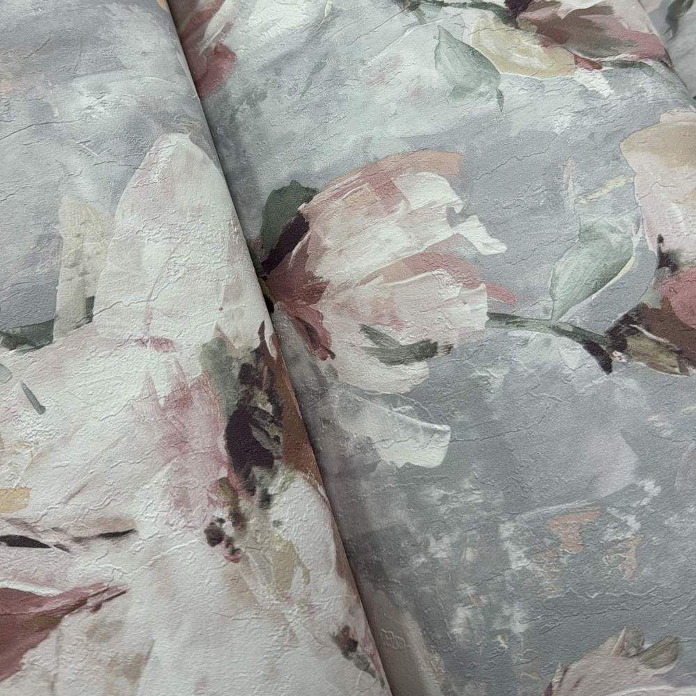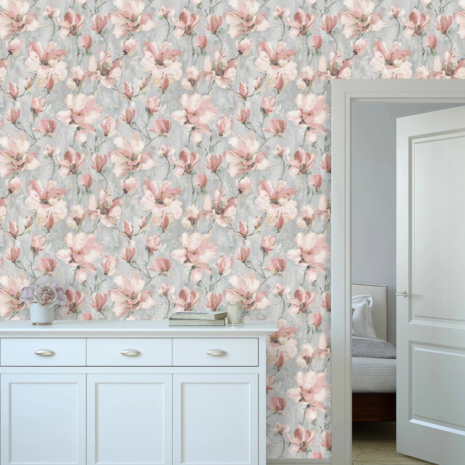 Camilla Floral Grey & Blush Magnolia Flowers Wallpaper 198503