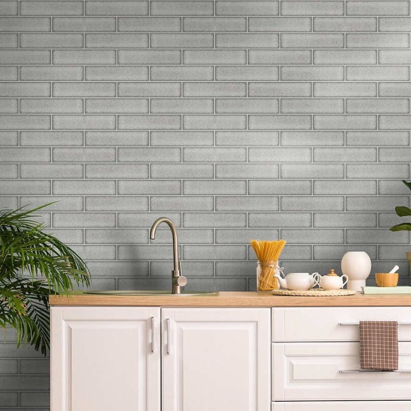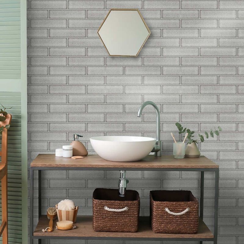 Celadon Gloss Tile Grey Kitchen & Bathroom Vinyl Wallpaper 89387