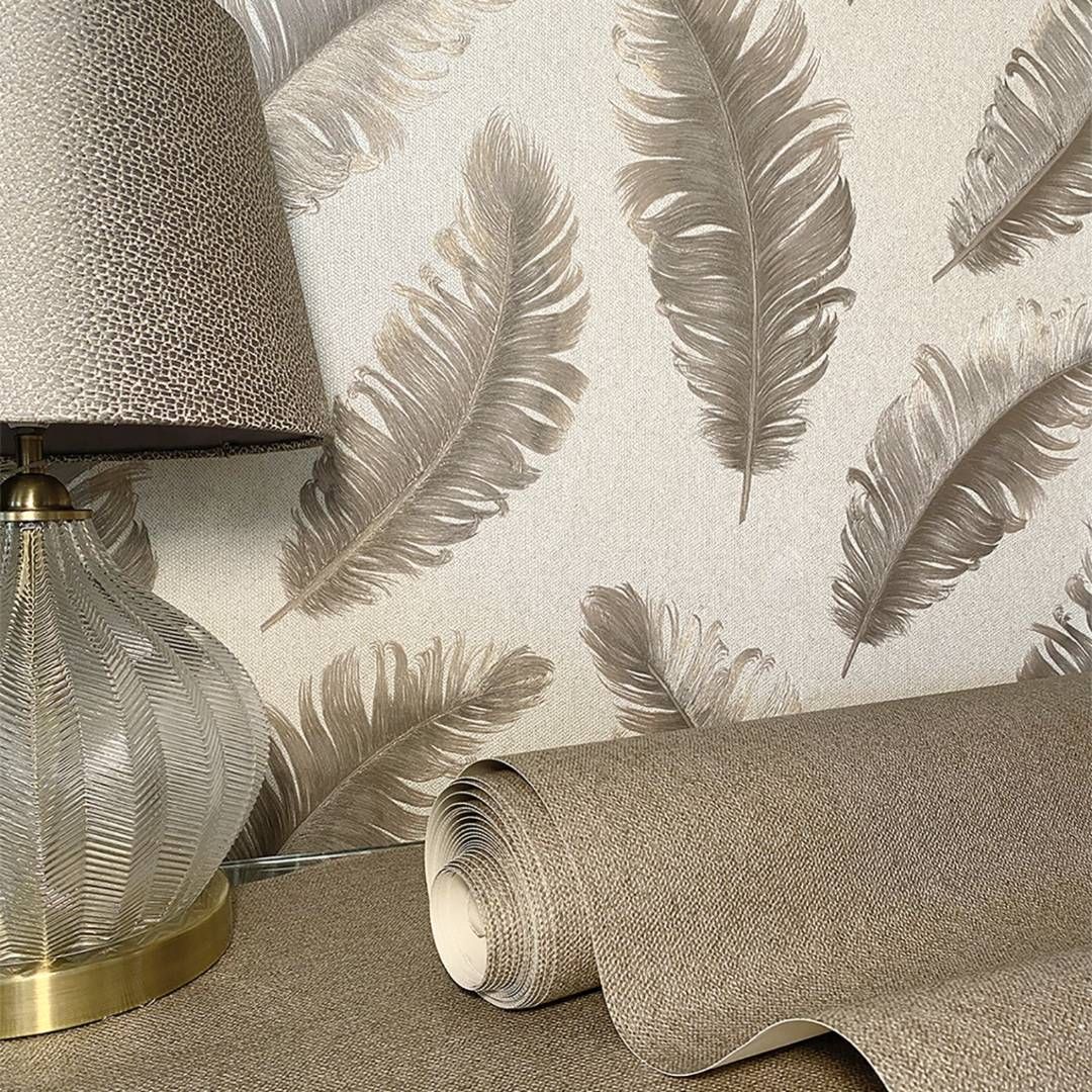Ciara Feather Mocha Beige Italian Vinyl Wallpaper 4411