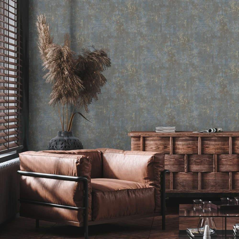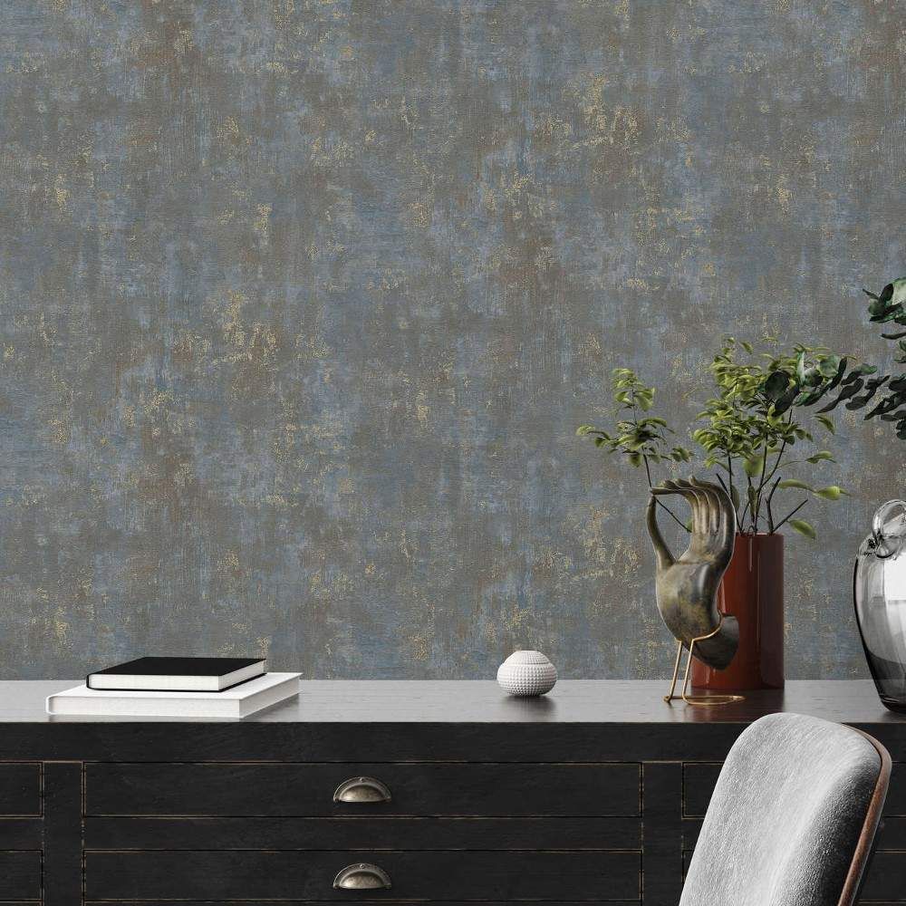City Concrete Effect Blue & Gold Stories of Life Collection Wallpaper 39670-1
