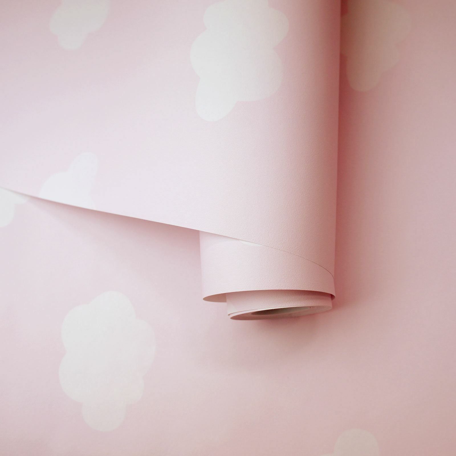 Cloudy Sky Pink Children's Bedroom Playroom Nursery Clouds Wallpaper 90992