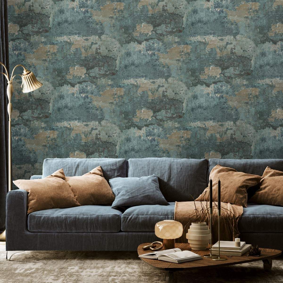 Concrete Texture Teal Blue Industrial Effect Wallpaper 13161
