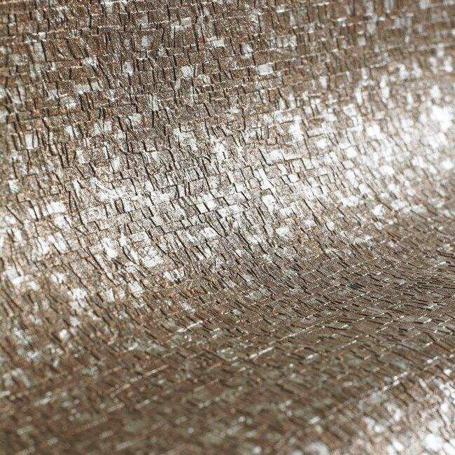 A chic, small-scale embossed design with a metallic finish that is reminiscent of layers of ruffled ribbon and exudes glitz.