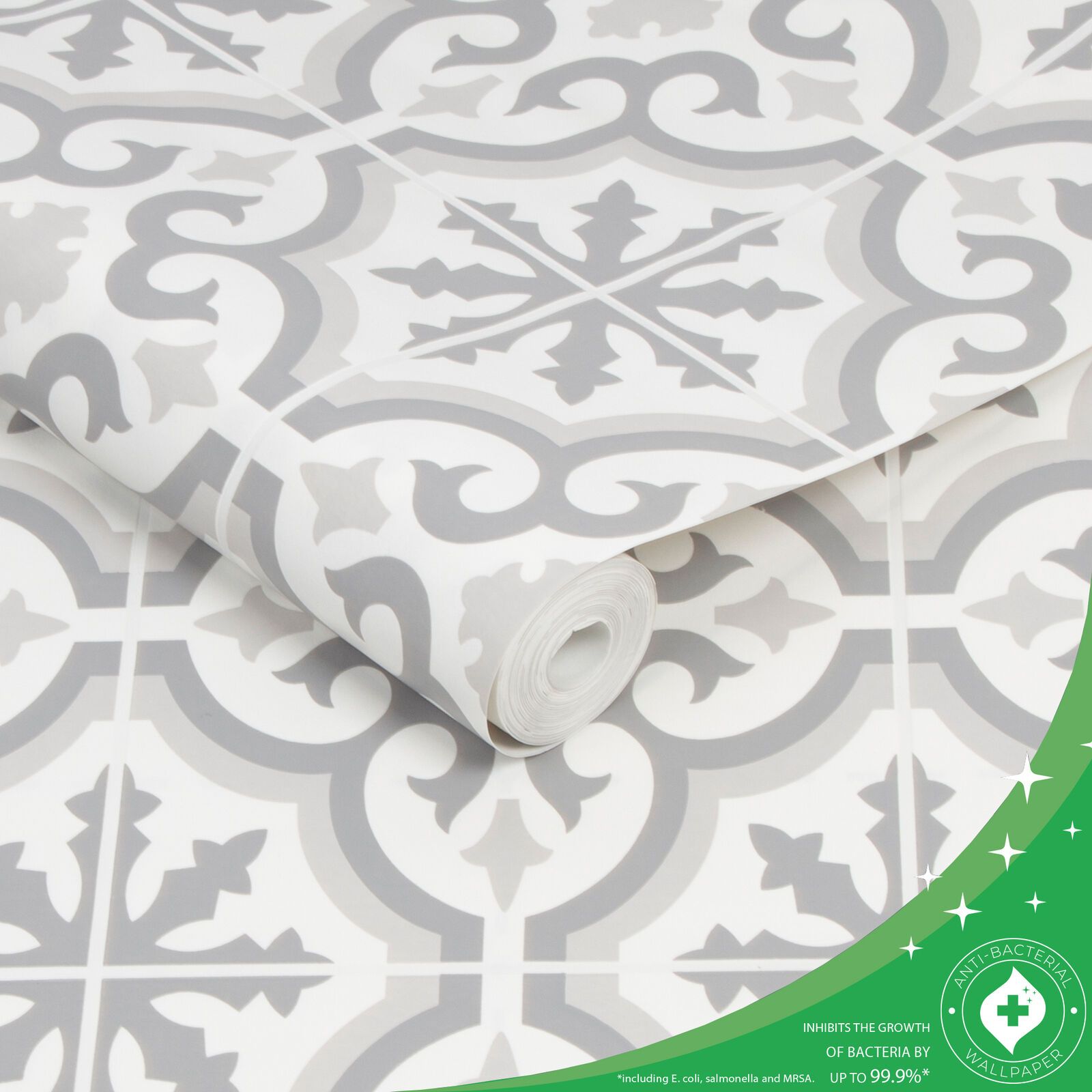 Calculate QuantityHeavy weight anti-bacterial contour wallpaper from Graham & Brown's Oasis Kitchen & Bathroom Collection. This Moroccan inspired tile effect design is certain to add copious amounts of sophistication to your home. Revolutionary anti-bacterial properties, is great for reducing bacteria around the home as well as being durable enough to handle everyday kitchen and bathroom activities. Ideal for use in kitchen’s & bathrooms.
