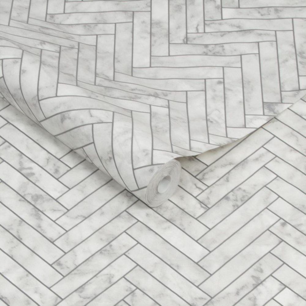 Contour Marble Chevron Tile Grey Kitchen & Bathroom Wallpaper 112644
