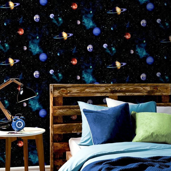 Calculate QuantityA design that's out of this world, transform your room with this space-themed wallpaper and set the scene for adventure. Adorned with planets and stars, this realistic depiction of the solar system creates an amazing 3D effect on your wall. A photographic-effect paper - designed to create impact in kids rooms, playrooms or anywhere you choose - it makes the ideal feature wall or you could paper the whole room for a truly spectacular space.