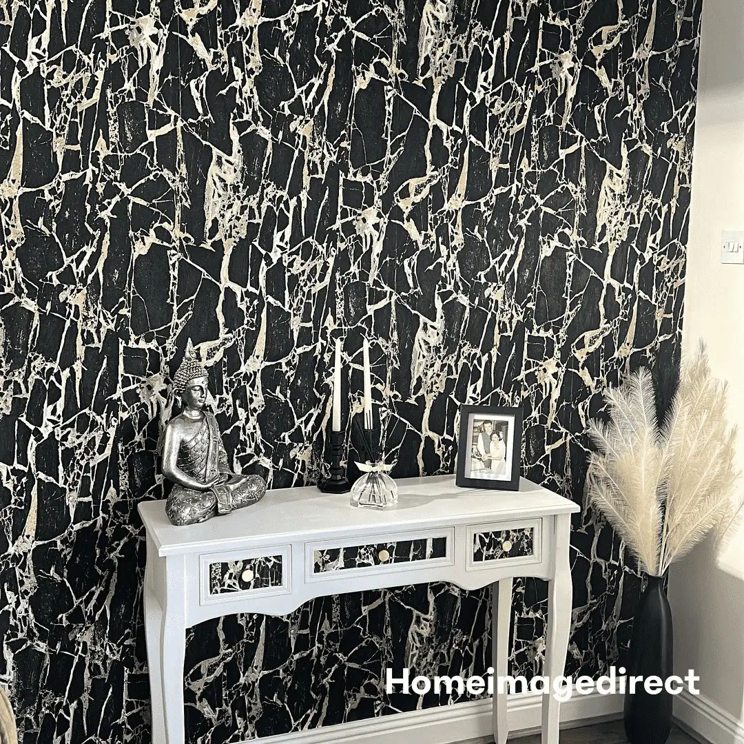Calculate QuantityThe Enzo Marble Black & Gold Luxury Italian Vinyl Wallpaper 538113, a show-stopper from Emiliana Parati's acclaimed Carrara Collection, will transform the interior of your home. This wallpaper expertly combines rich black and glittering gold to provide an opulent, timeless atmosphere. Its robust Italian vinyl construction, which guarantees that it will look just as gorgeous as it did on day one for years to come, is what really sets it apart. Find your ideal match by perusing a range of alluring hues. Consider getting a sample to experience its feel and colour authenticity for yourself because pictures can't do it justice. With the Enzo Marble Wallpaper, you may enhance your décor and create a luxurious atmosphere in your home.