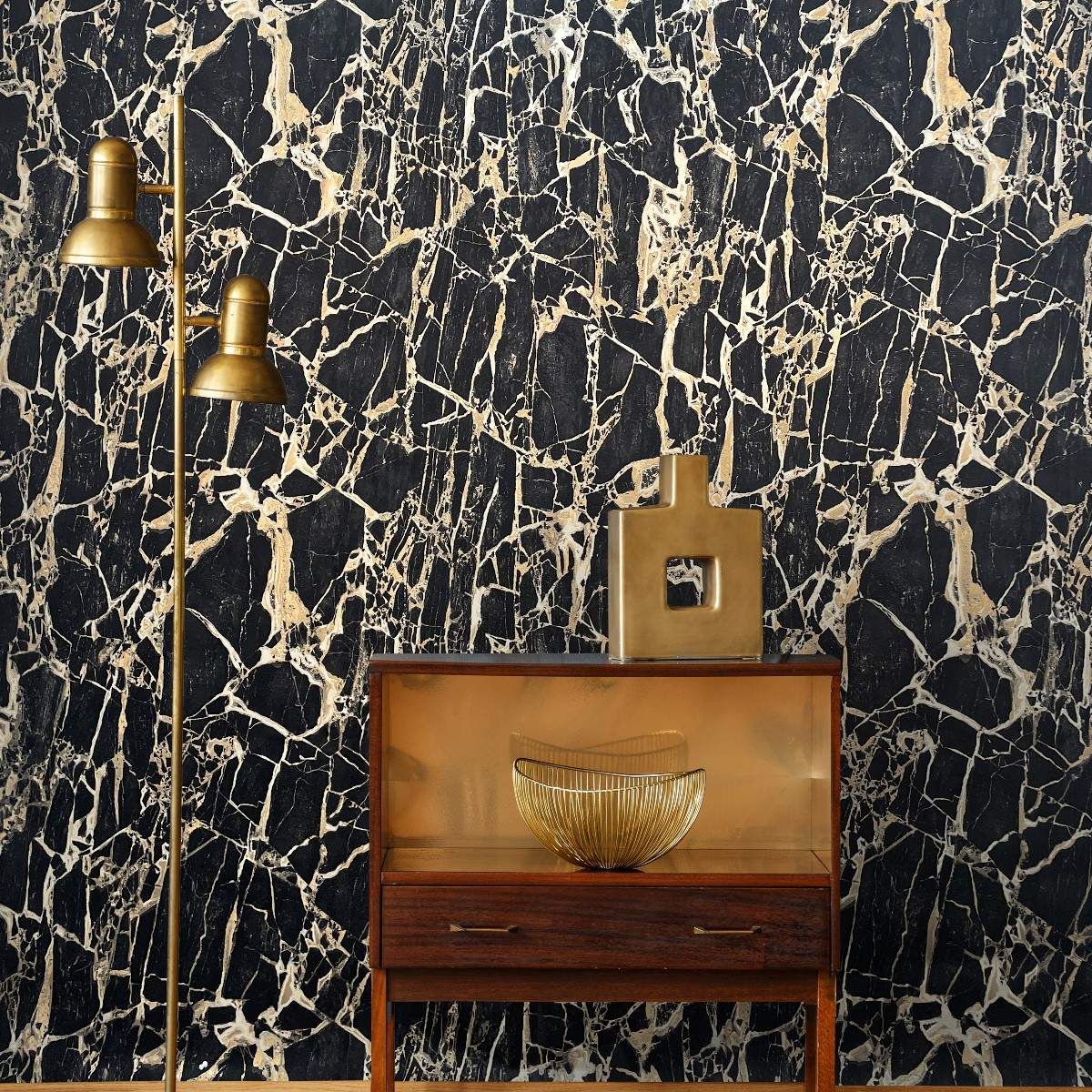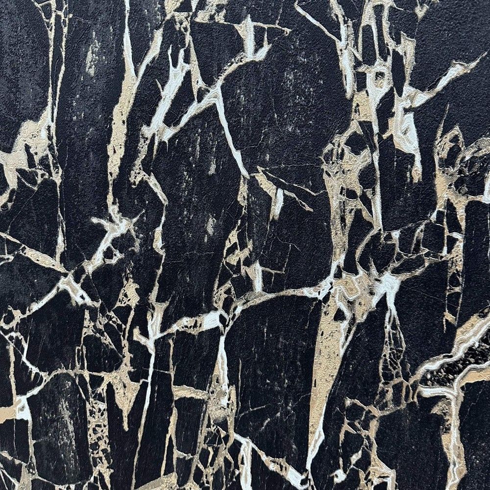 Enzo Cracked Marble Black & Gold Carrara Luxury Italian Vinyl Wallpaper 538113