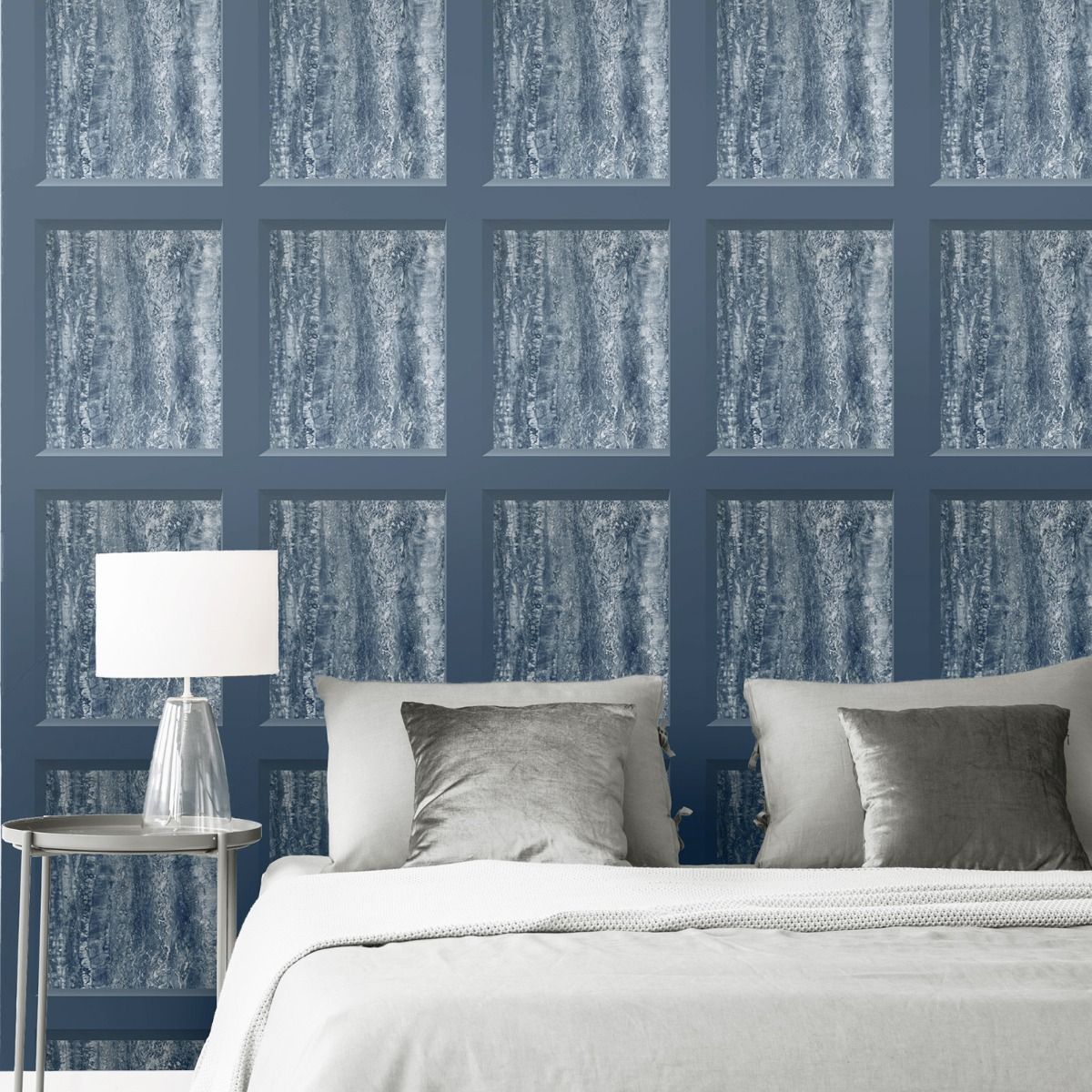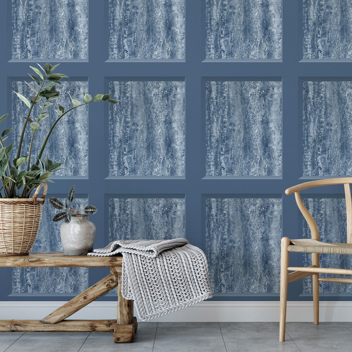Calculate QuantityIn your home, this Eterna Marble Panel Wallpaper will create a chic centre point. With sophisticated shading to provide depth and a distressed-looking marble pattern in the centre of each panel, the design has the appearance of wood panels in delicate shades of mild blue. This premium wallpaper is simple to hang, has a matte surface, and looks great when used to accent a wall or adorn an entire room.