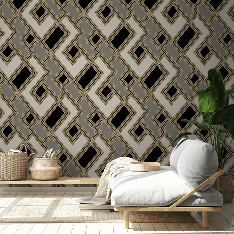 Calculate QuantityThis unique fabric geometric wallpaper from Grandeco’s new range is an absolute show stopper. Featuring a montage of colourful shapes with a classy metallic gold trim highlight throughout, set on a silky vinyl for a truly mesmerising finish. This wallpaper is perfect to use on a large wall area such as hallways and stairs and would definitely make a fabulous feature wall. A paste the wall only solution makes it super easy to hang. Available In other colours, please order a sample for true colour and texture.