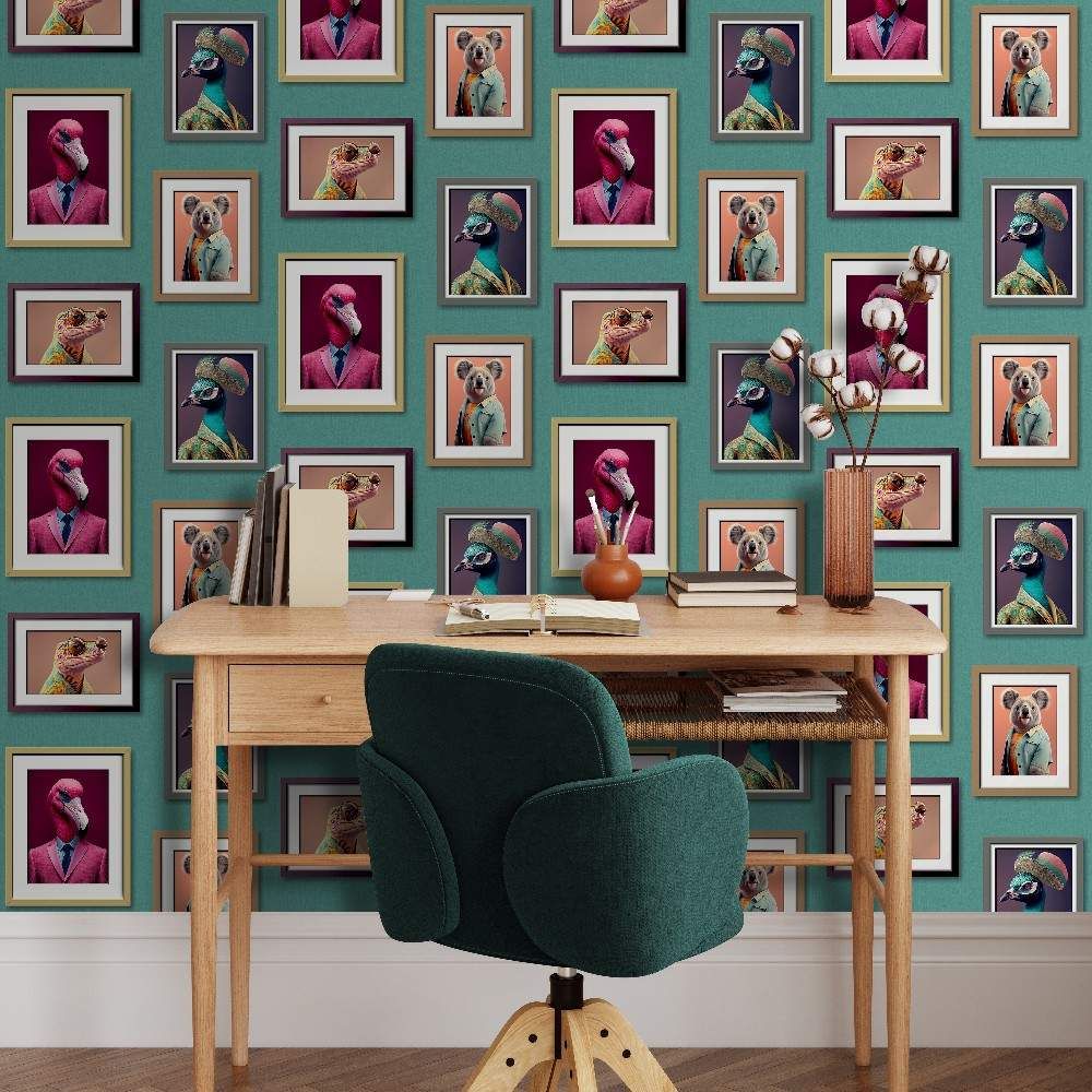 Fantastic Animals In Frames Conversational Teal Multicoloured Wallpaper 102574