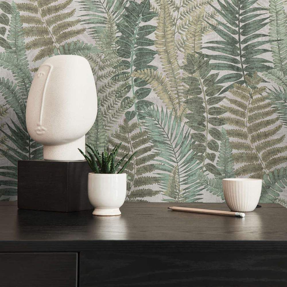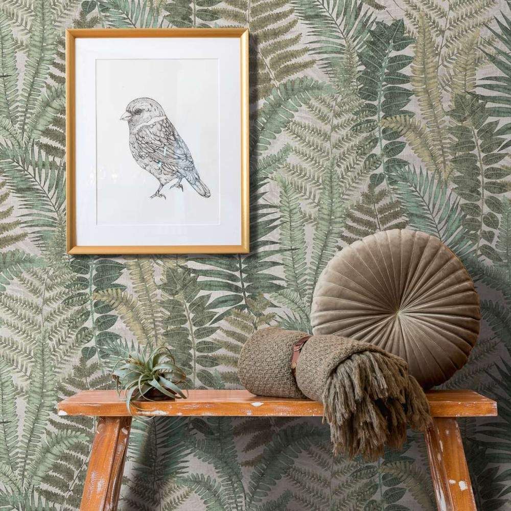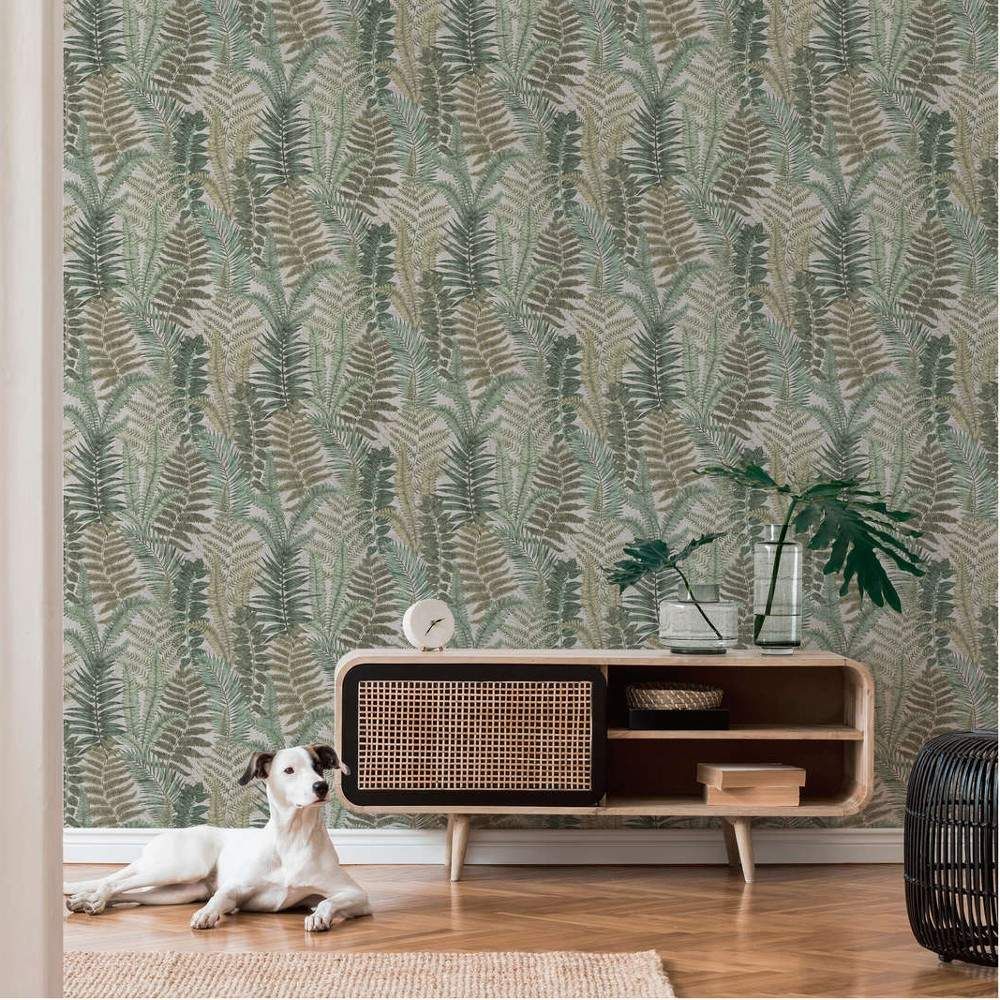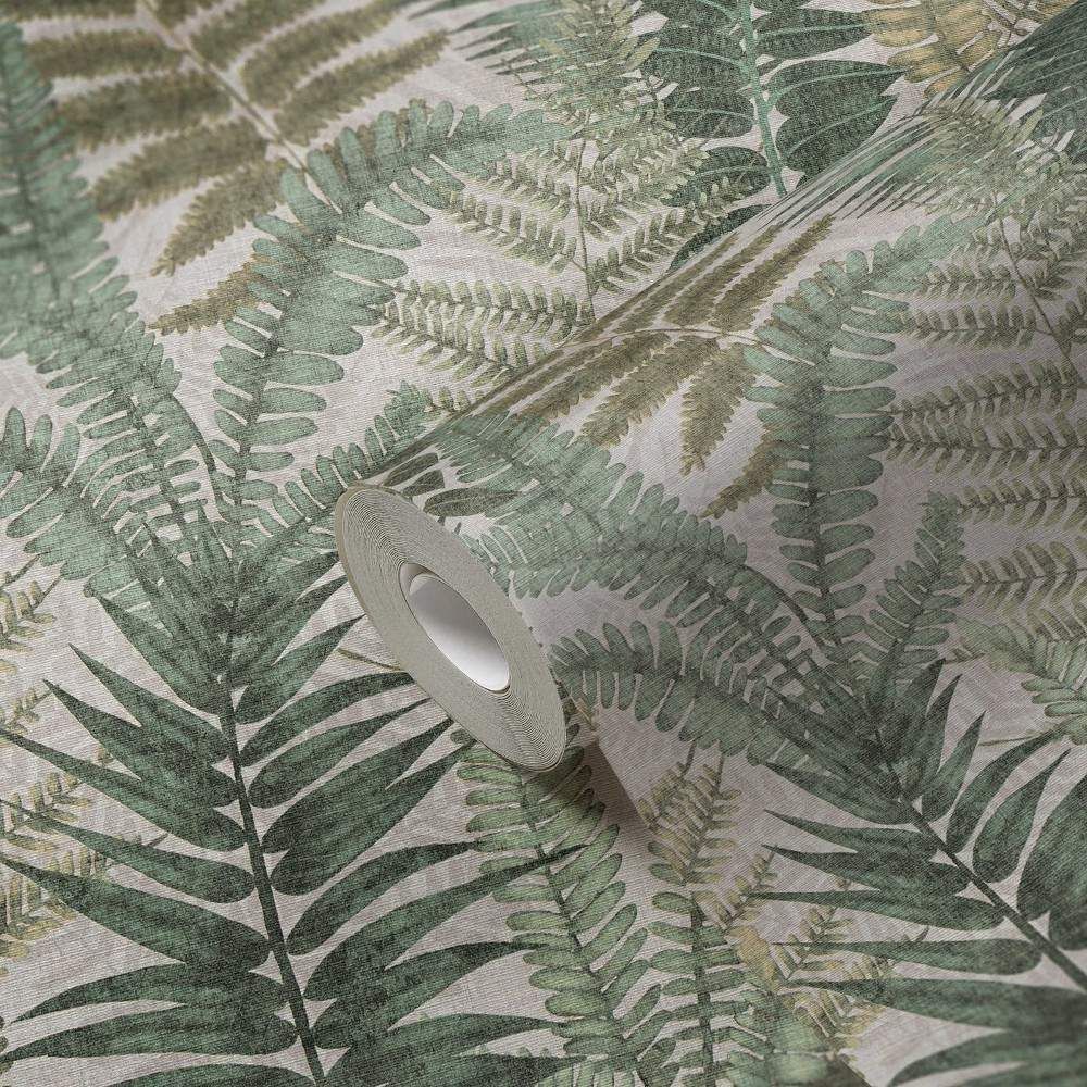 Fern Leaves Fabulous Beige Green Floral Textured Vinyl Wallpaper 39347-4