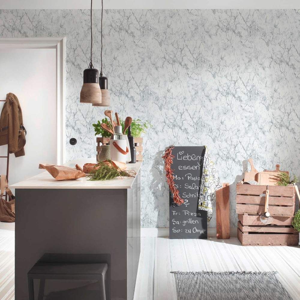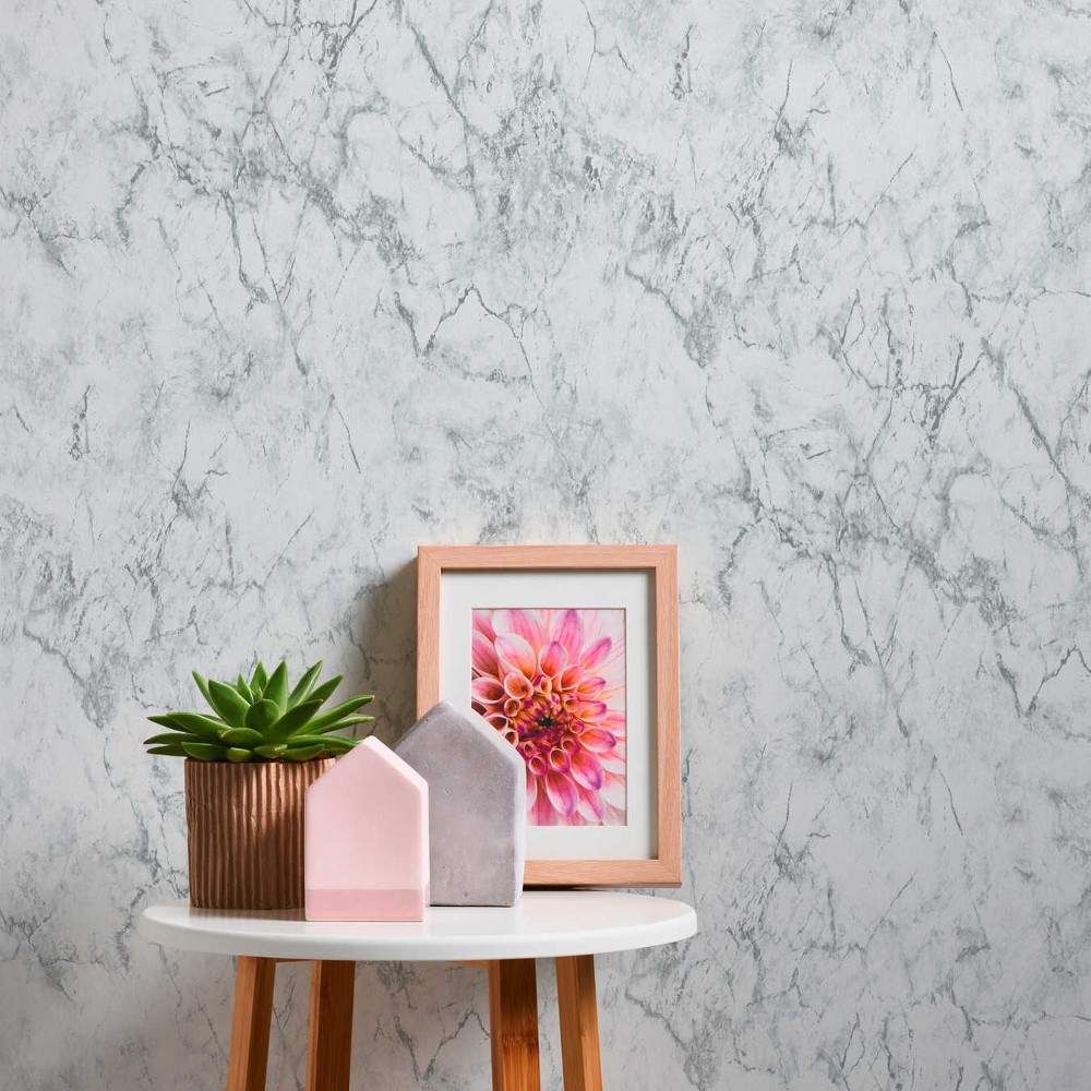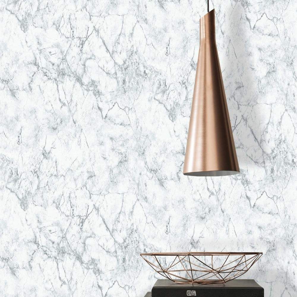Fine Marble White & Black Vinyl Wallpaper 36157-2
