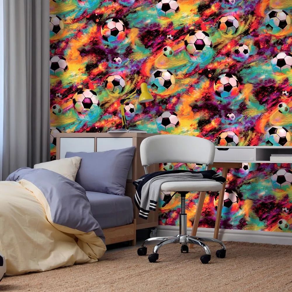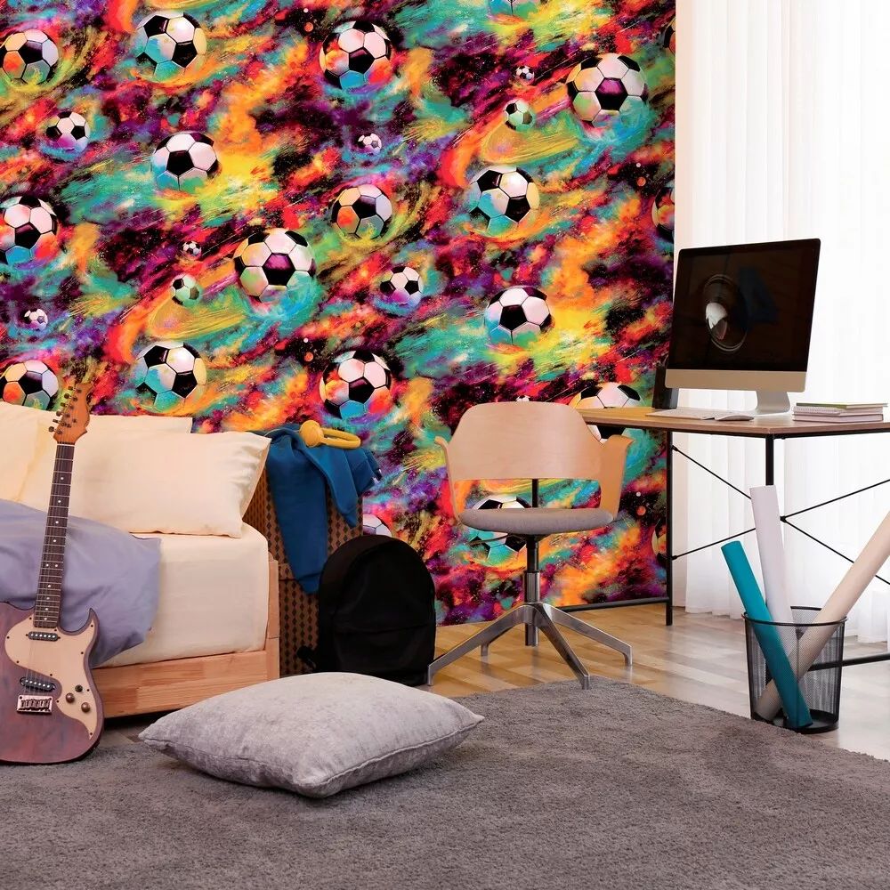 Football Galaxy Multicoloured Children’s Soccer Wallpaper 13780