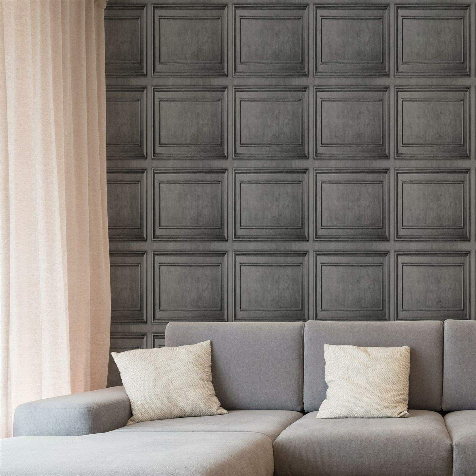 Fresco Wooden Panelling Grey Wallpaper 112586