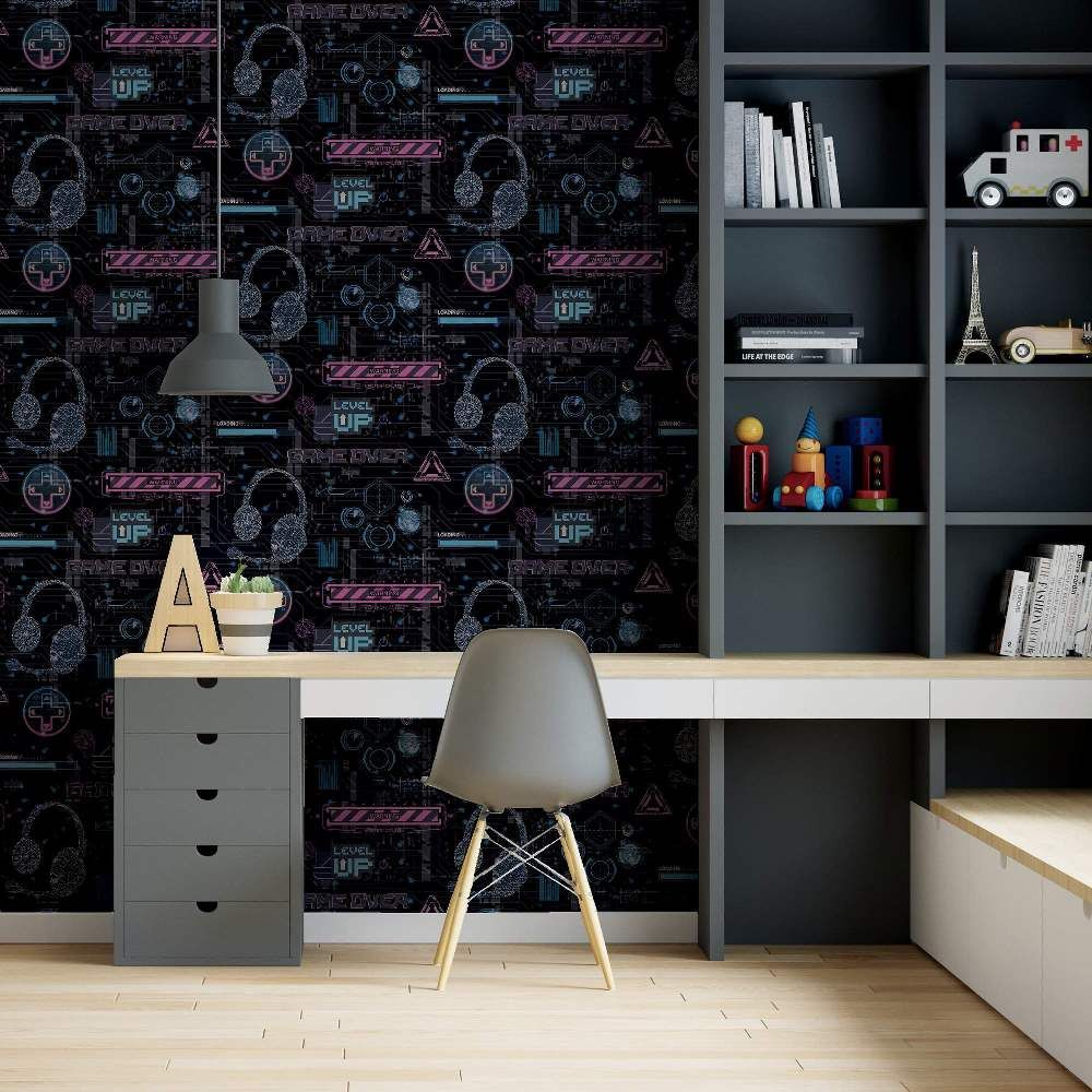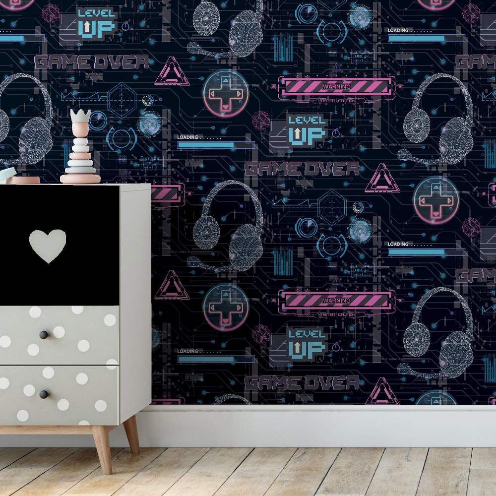Calculate QuantityTransform your gaming fantasies into reality with this video glitch-inspired wallpaper. It showcases gamer-themed graphics and vibrant neon signs in an array of colours. This wallpaper is an ideal choice for gamers of all ages and exudes a Matrix-inspired aura. It's suitable for decorating boys' bedrooms, playrooms, dens, or even office spaces.