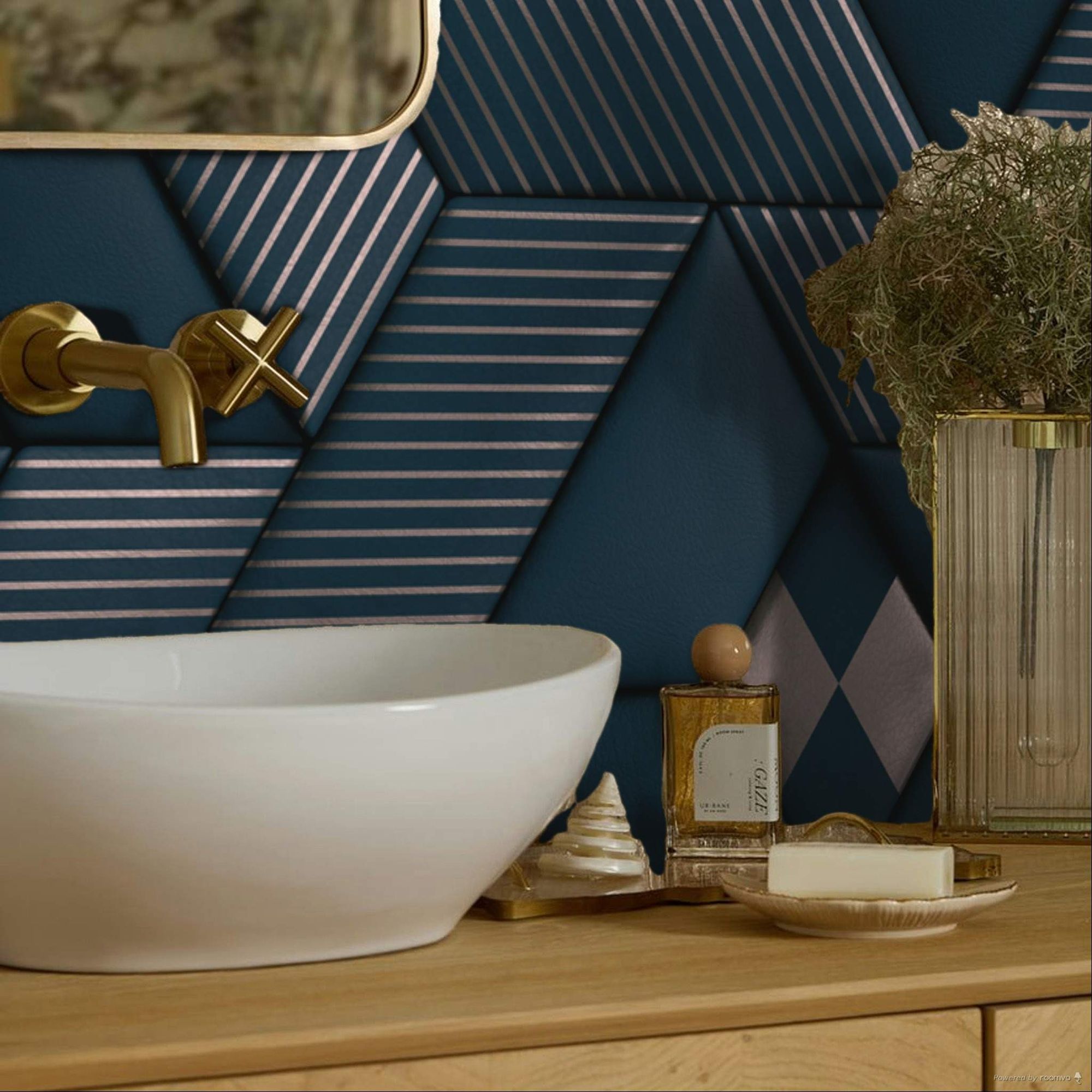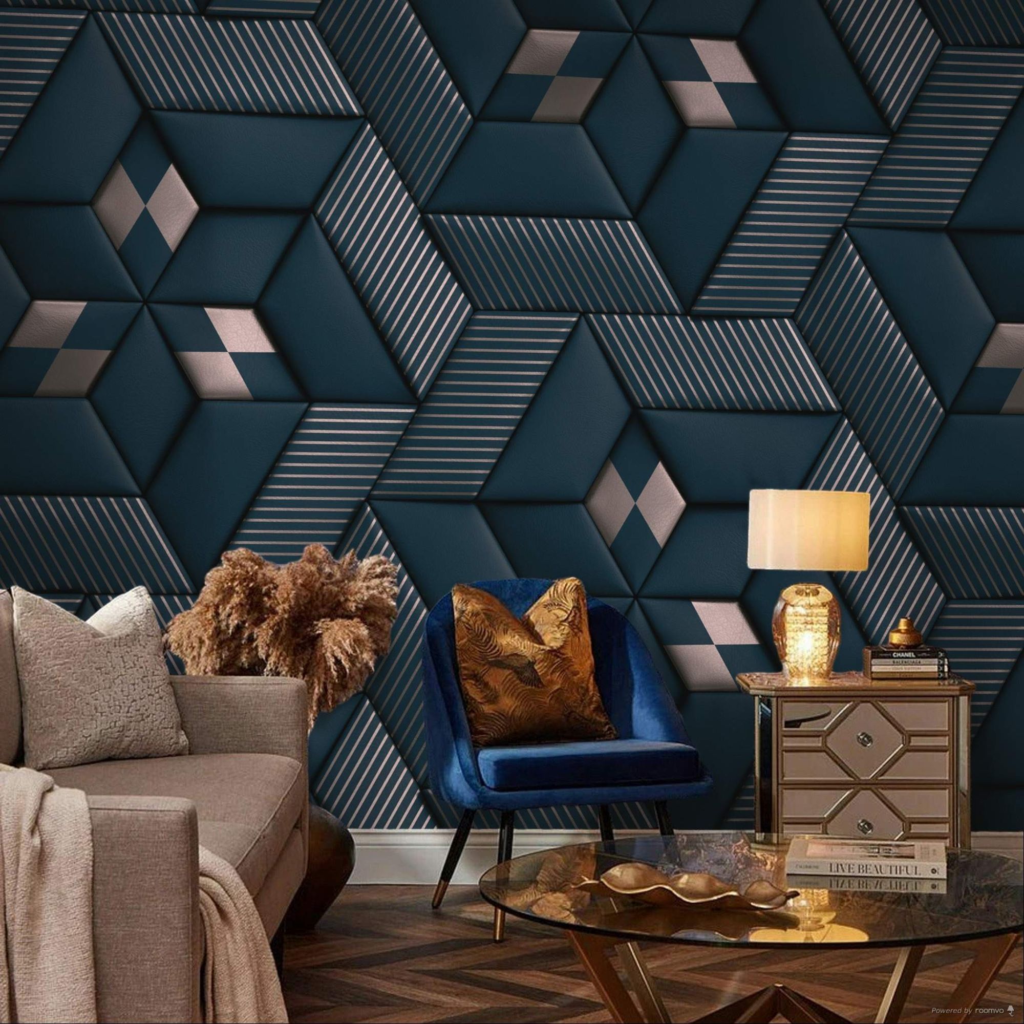 Geometric Star 3D Mural Navy Blue & Metallic Rose Gold Vienna Collection Vinyl 391783