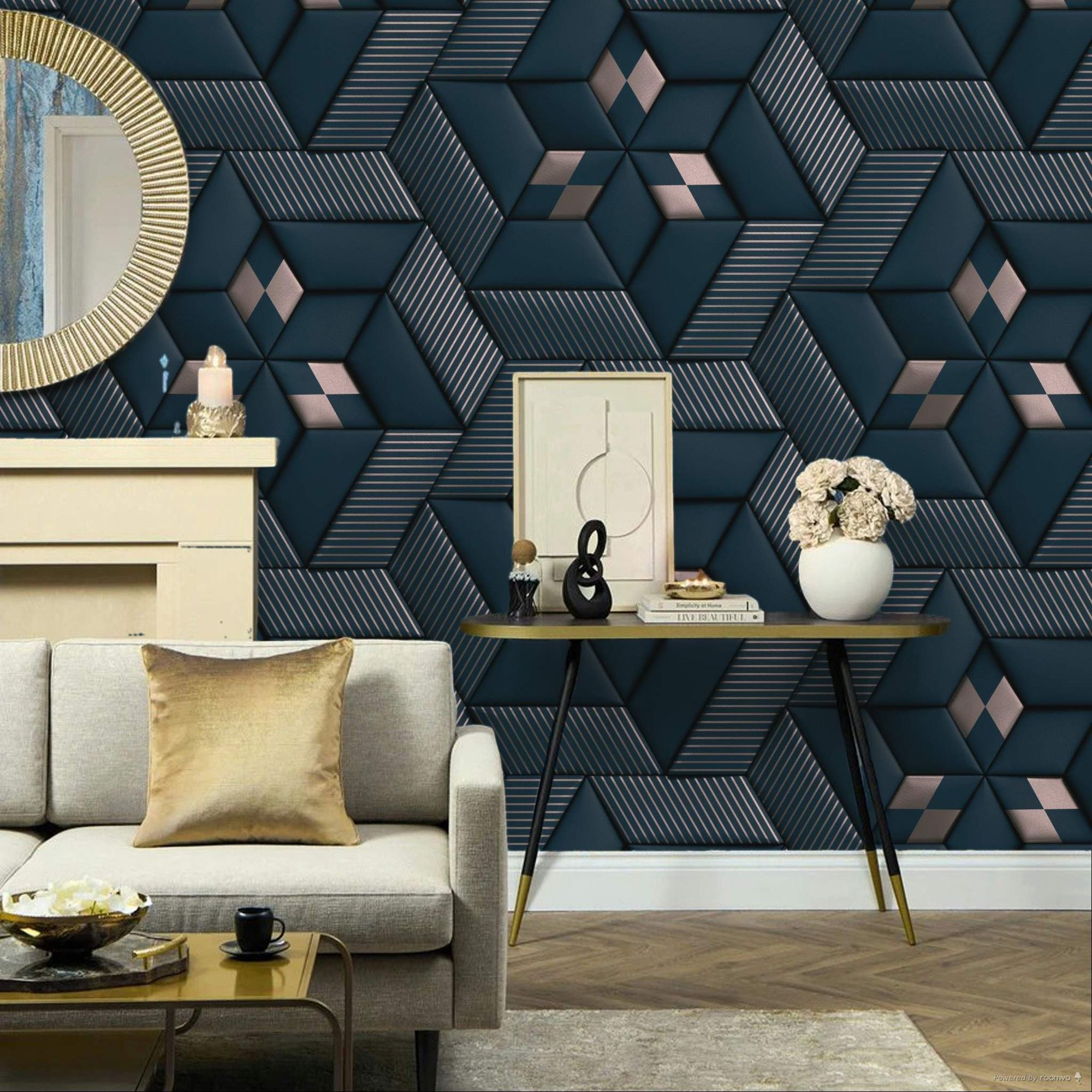 Calculate QuantityThis wallpaper features a striking and modern geometric design with a three-dimensional effect. The four-sided shapes form an intricate star pattern, accented with metallic rose gold highlights for added depth and elegance. It is provided in three 2.8-meter lengths on a 53cm wide roll, with a mural that creates a continuous, side-to-side repeating image.