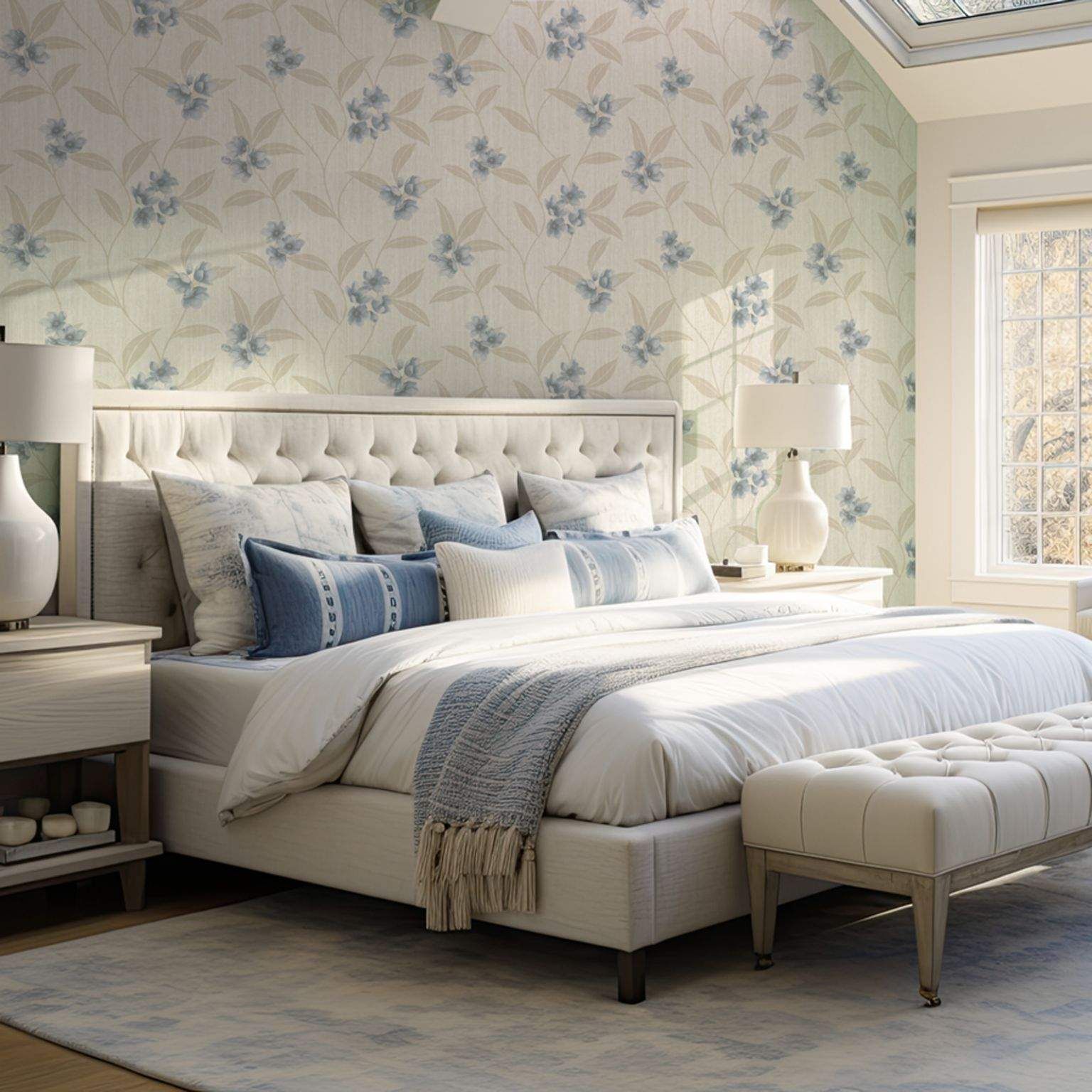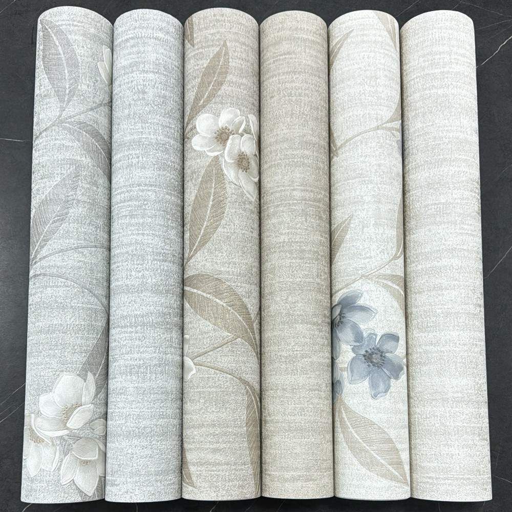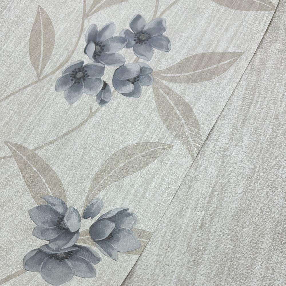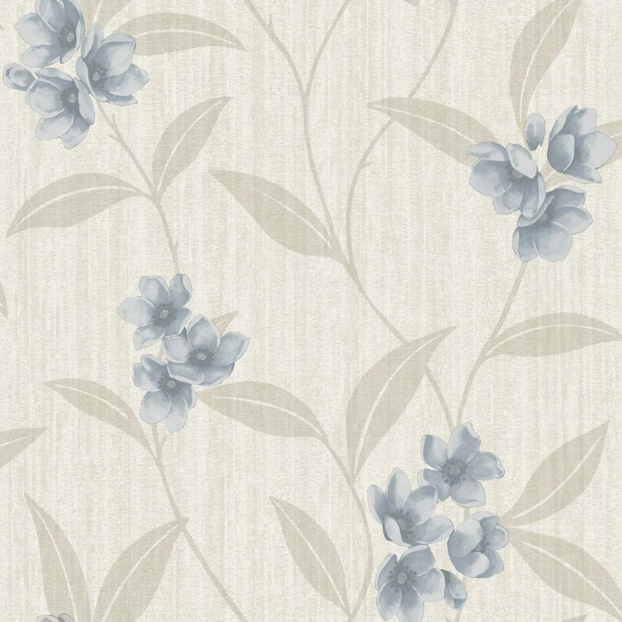 Giovanna Floral Cream & Blue Premium Italian Vinyl Wallpaper 4817