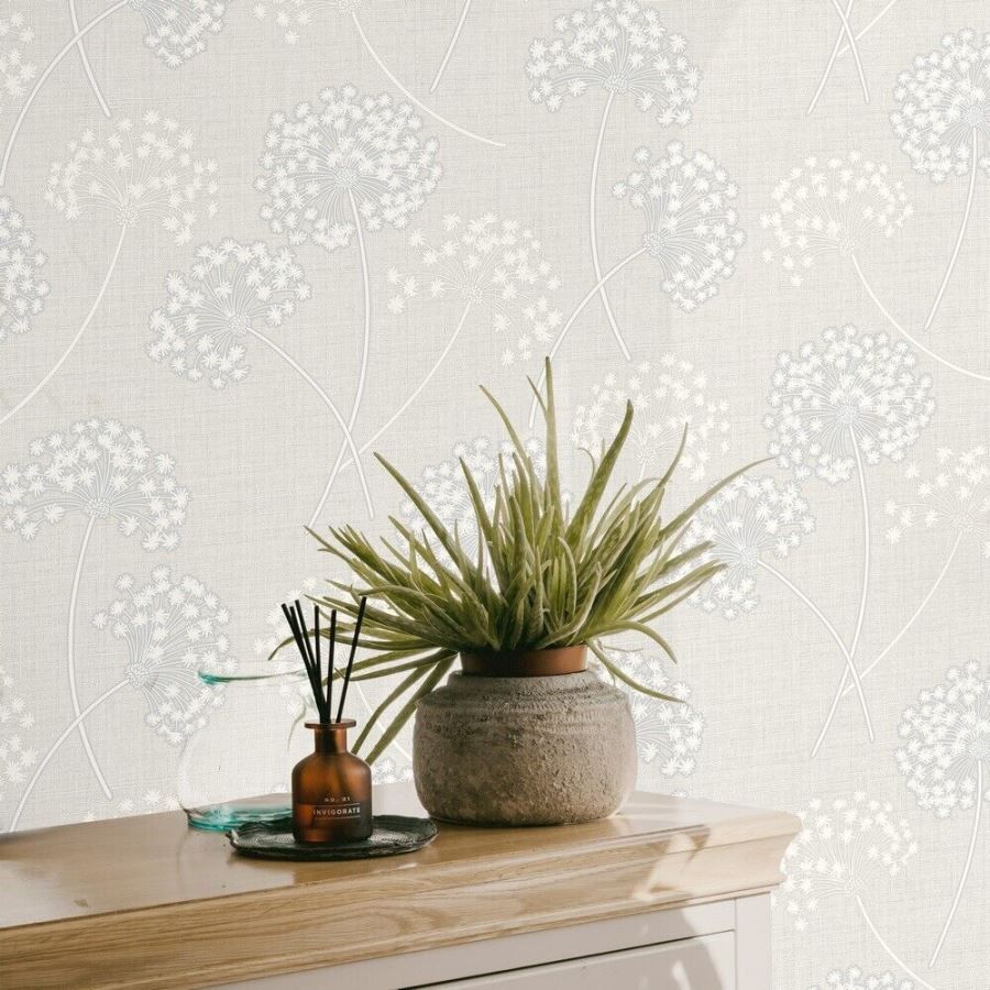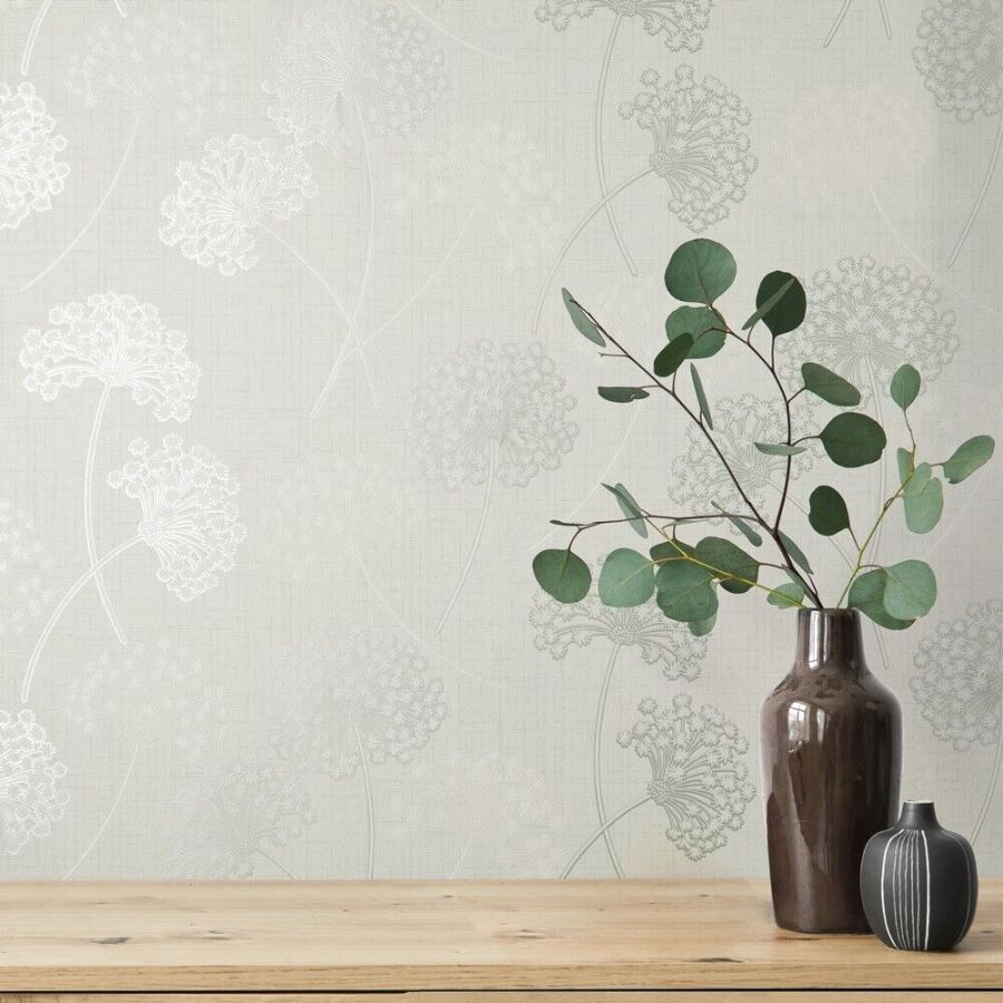 Grace Allium White & Silver Metallic Floral Texture Wallpaper FD43283