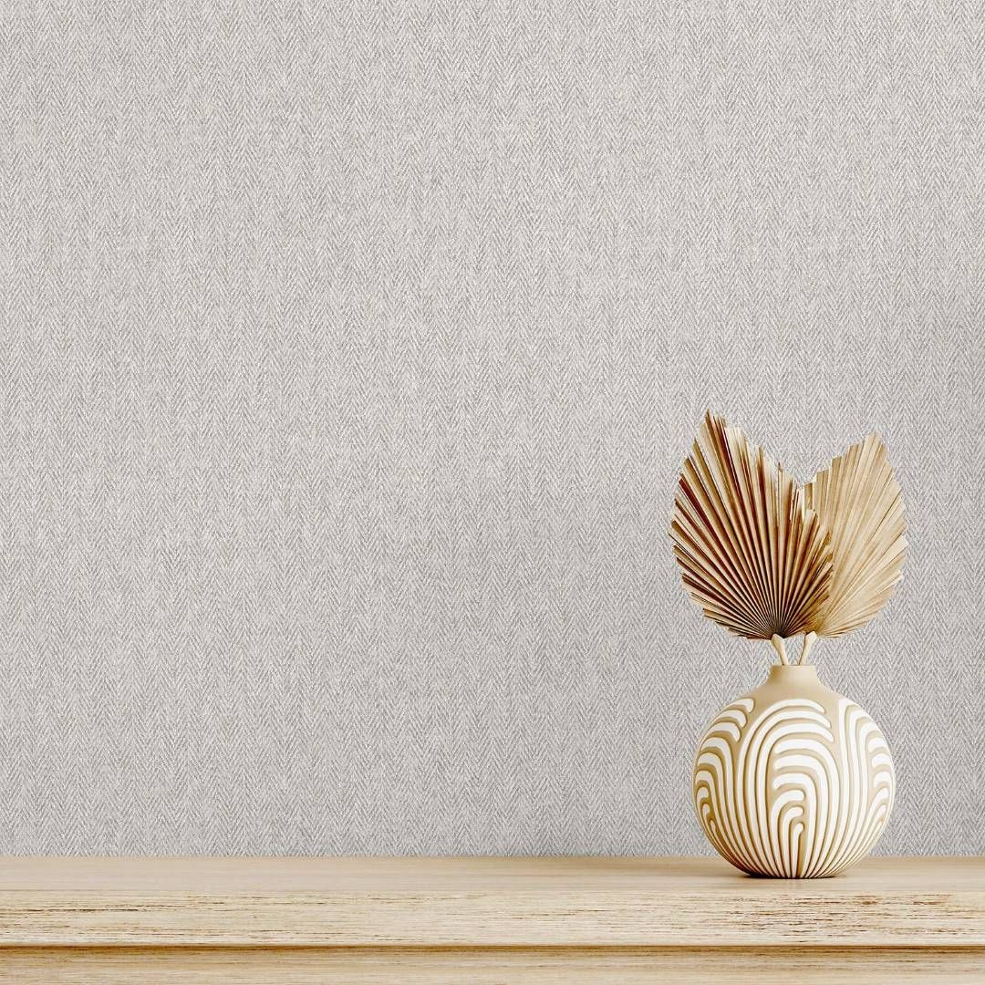 Harris Texture Soft Grey Tweed Herringbone Wallpaper by Crown M1873