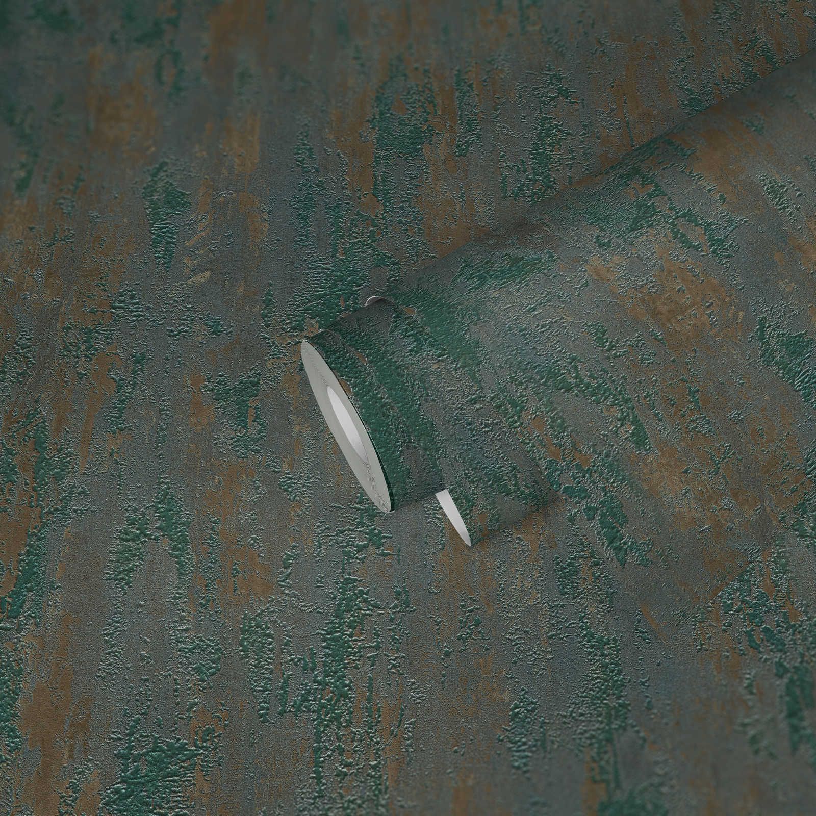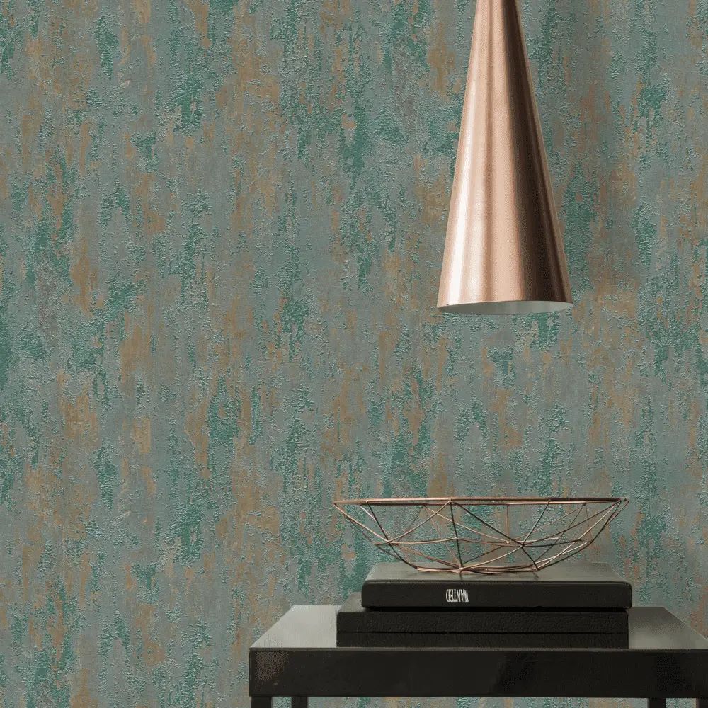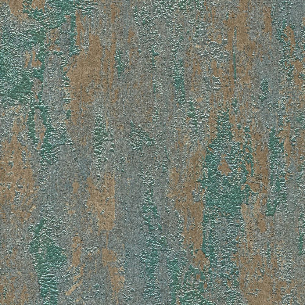 Havana Distressed Industrial Effect Green & Copper Vinyl Wallpaper 32651-2