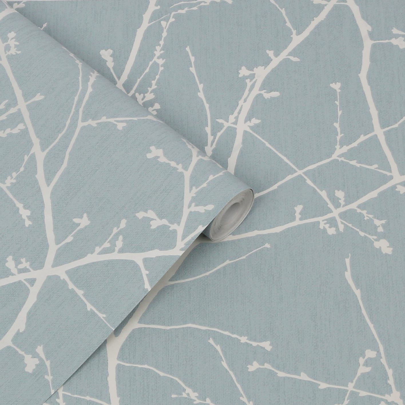 Innocence Twig Duck Egg Calico Textured Wallpaper 33-270