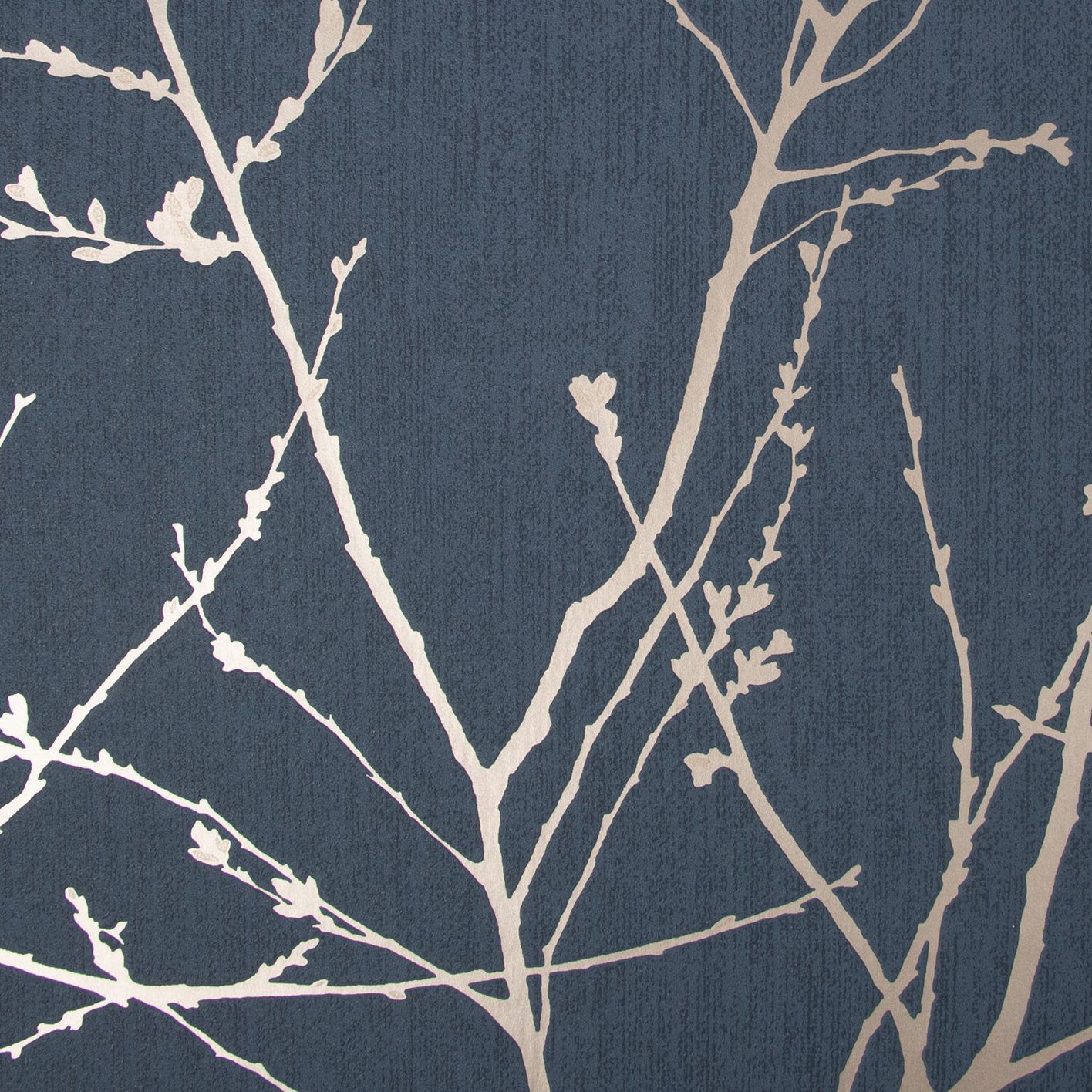 Innocence Twig Navy & Copper Calico Textured Wallpaper 108619