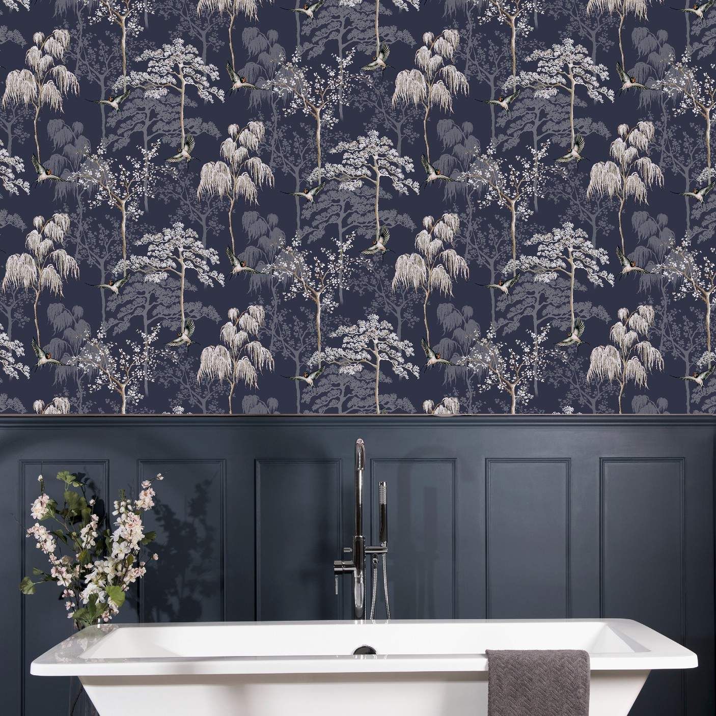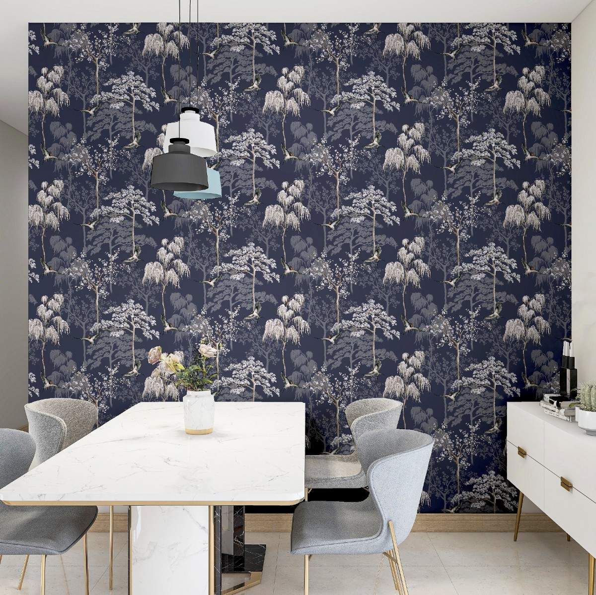 Calculate QuantityThis Trendy wallpaper design features beautifully hand-drawn oriental trees and birds on a soft blue background, highlighted with pearlescent details to add texture and interest. It's an eye-catching choice for a feature wall in a living room, bedroom, or hallway, and adds a touch of elegance and charm to any space.