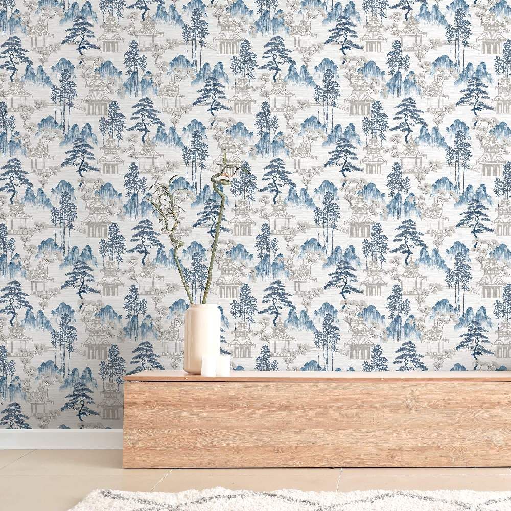 Japanese Pagoda Blue & Grey Wallpaper 924803