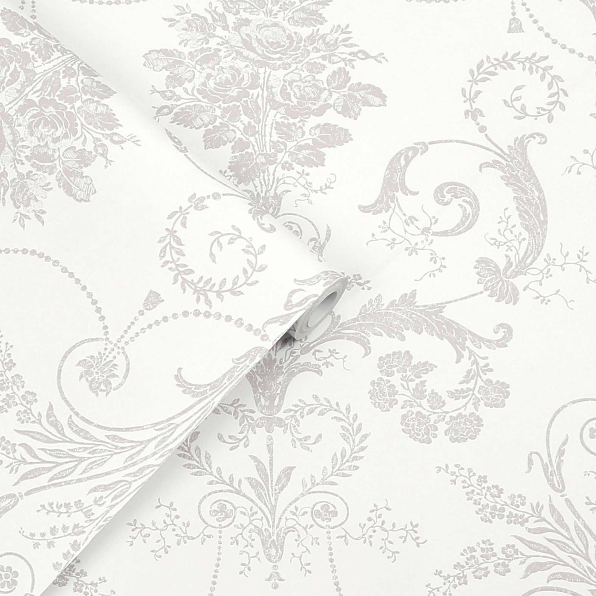 Calculate QuantityThe Laura Ashley Josette Dove Grey and White Wallpaper updates a heritage design with its ornate damask motif of chandeliers and rose bouquets. The trendy grey and white colour palette gives a contemporary feel to the traditional design, creating a fresh and light ambiance suitable for any interior style. The result is a romantic and sophisticated French chateau-inspired wallpaper with a modern twist.