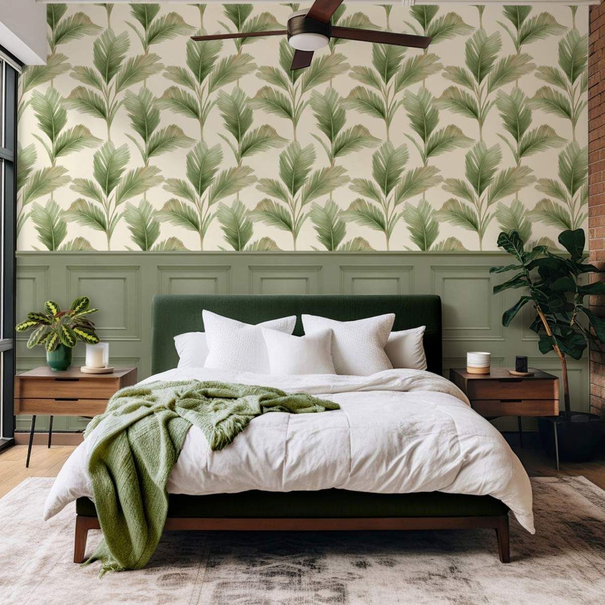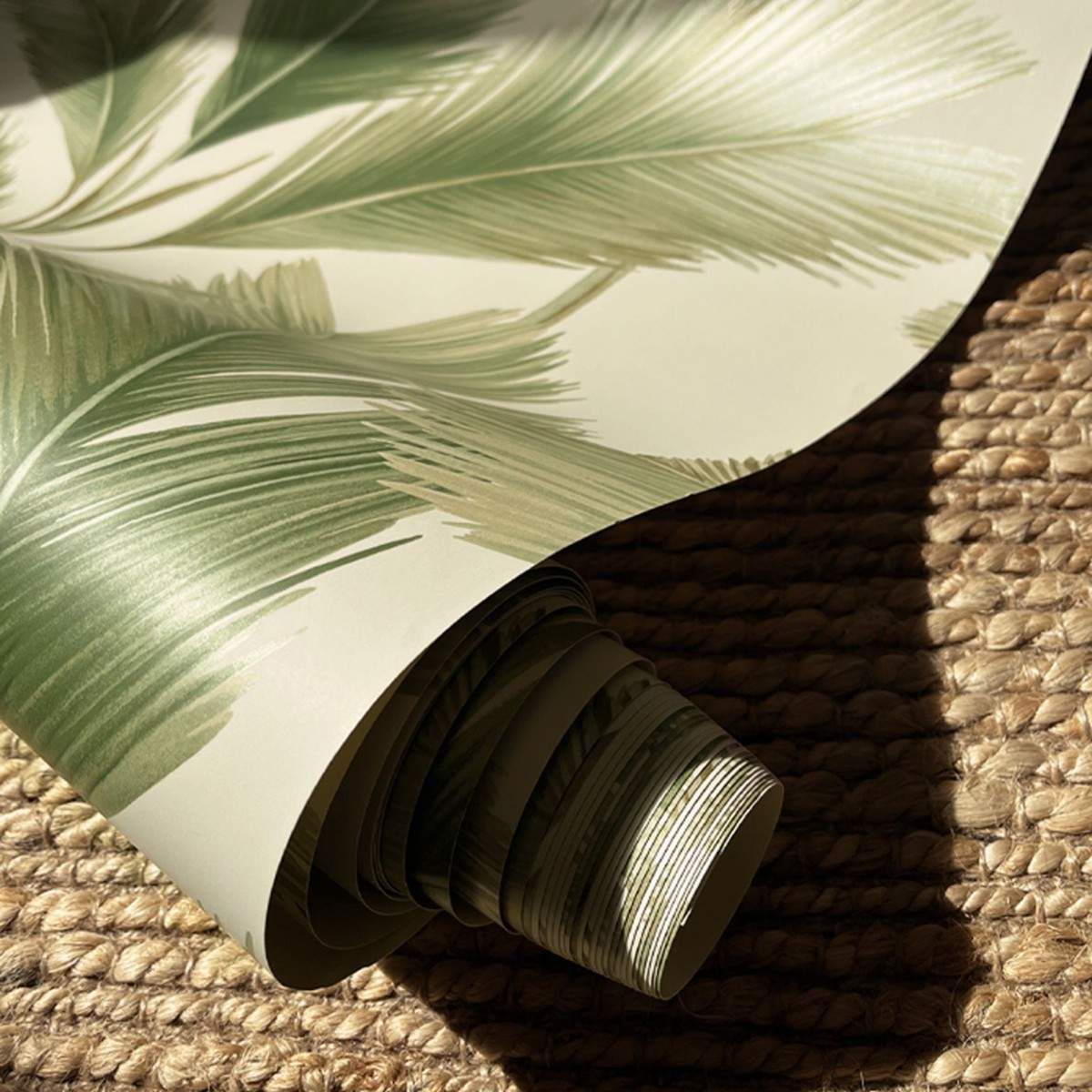 Kailani Palm Tree Leaves Sage Green & Cream Wallpaper 59122