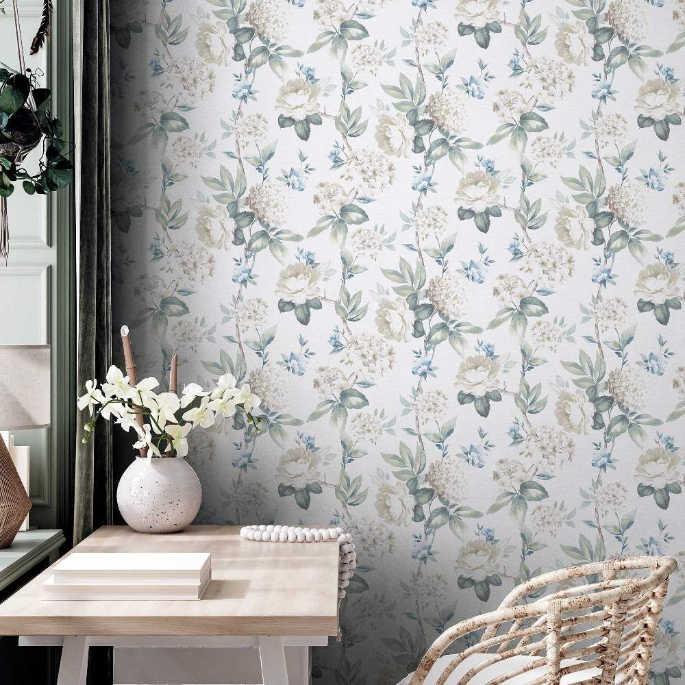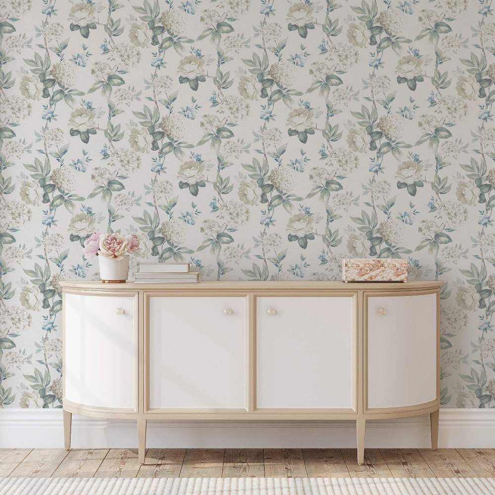 Calculate QuantityA serene and romantic atmosphere is effortlessly created by this elegant floral design, adorned with delicate, cascading decorative flowers. This wallpaper imparts timeless allure to any room with its soft blue floral elements set against a creamy background. Meticulously crafted to grant a sophisticated and immaculate look to your selected wall, it is perfect for either making a captivating centrepiece or enveloping an entire area.