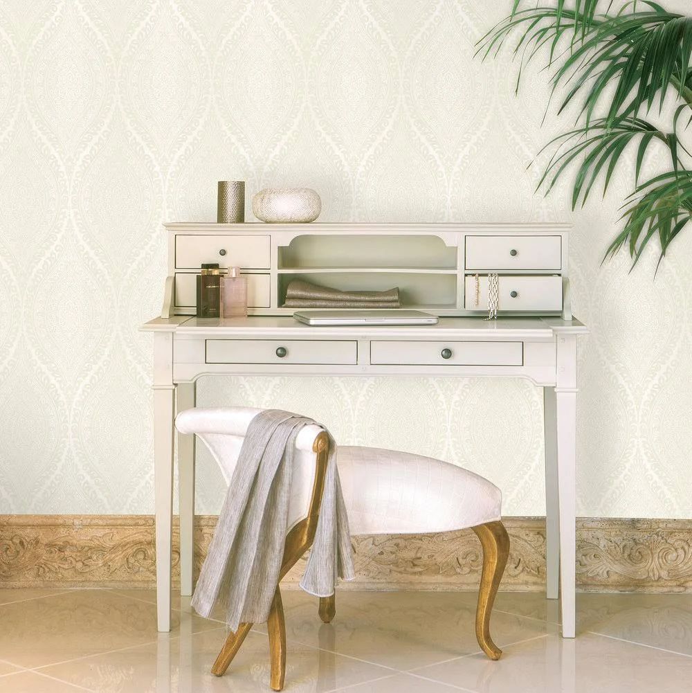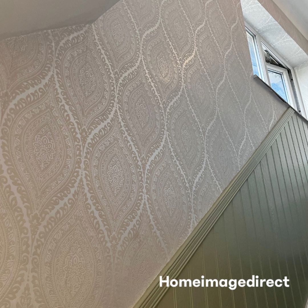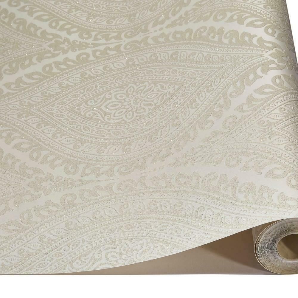 Calculate QuantityNew from Grandeco, and part of their Gold range, comes this fantastic Kismet Damask wallpaper. This stunning modern wallpaper features a damask leaf pattern, the design is raised and infused with sparkling glitter, and set on a shimmering metallic background with graded fade effect. Please purchase a sample for true colour and texture.