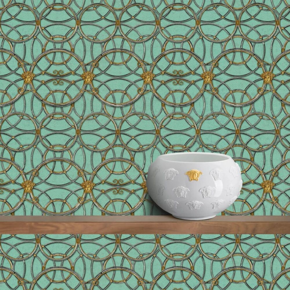 Calculate QuantityPart of the "La Scala del palazzo" collection, that draws inspiration from Versace's Milanese palazzo in Via Gesù, this wallpaper is inspired by the scenic marble staircase leading to the private quarters. The print boasts an elegant combination of architectural style in a delicate green palette.*This is a special order item and cannot be returned. We highly recommend you order a sample before purchasing this wallpaper.