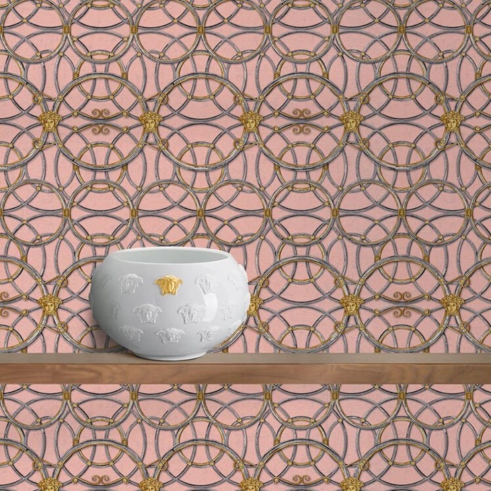 Calculate QuantityInspired by the "La Scala del palazzo" collection that draws inspiration from Versace's Milanese palazzo in Via Gesù, this wallpaper celebrates the scenic marble staircase leading to the private quarters. The print boasts an elegant combination of architectural style in a delicate pastel rose palette.*This is a special order item and cannot be returned. We highly recommend you order a sample before purchasing this wallpaper.