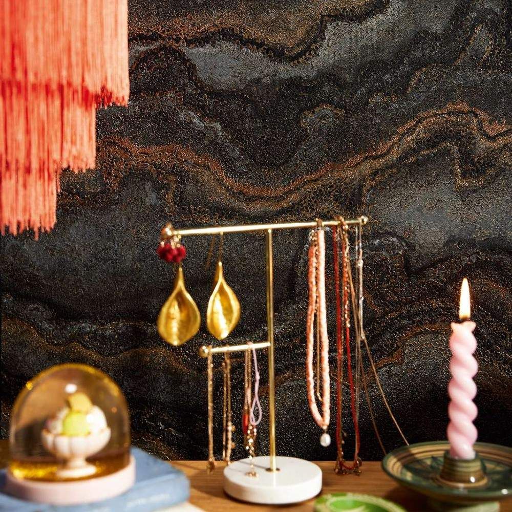 Lava Marble Charcoal Black & Metallic Gold Stories of Life Collection Wallpaper 39659-4