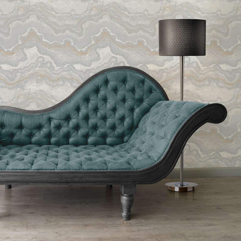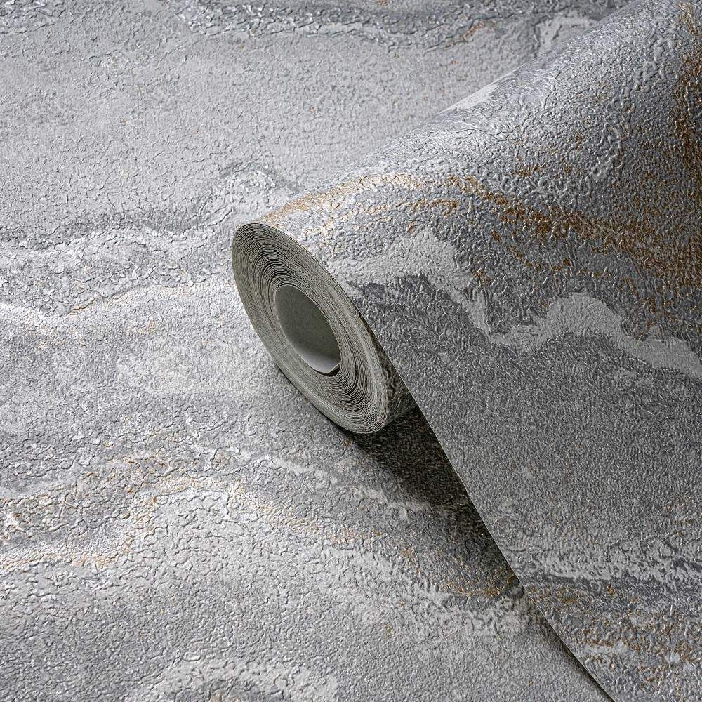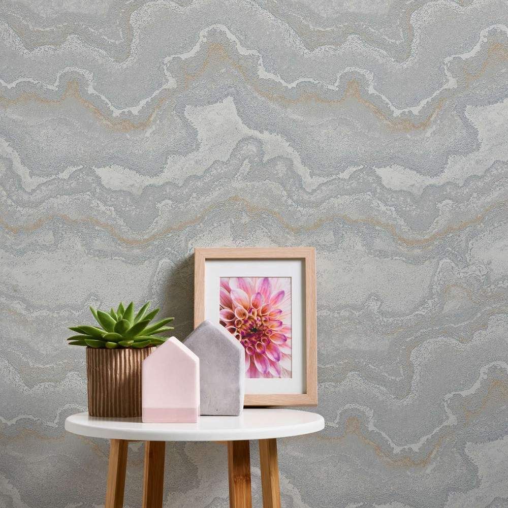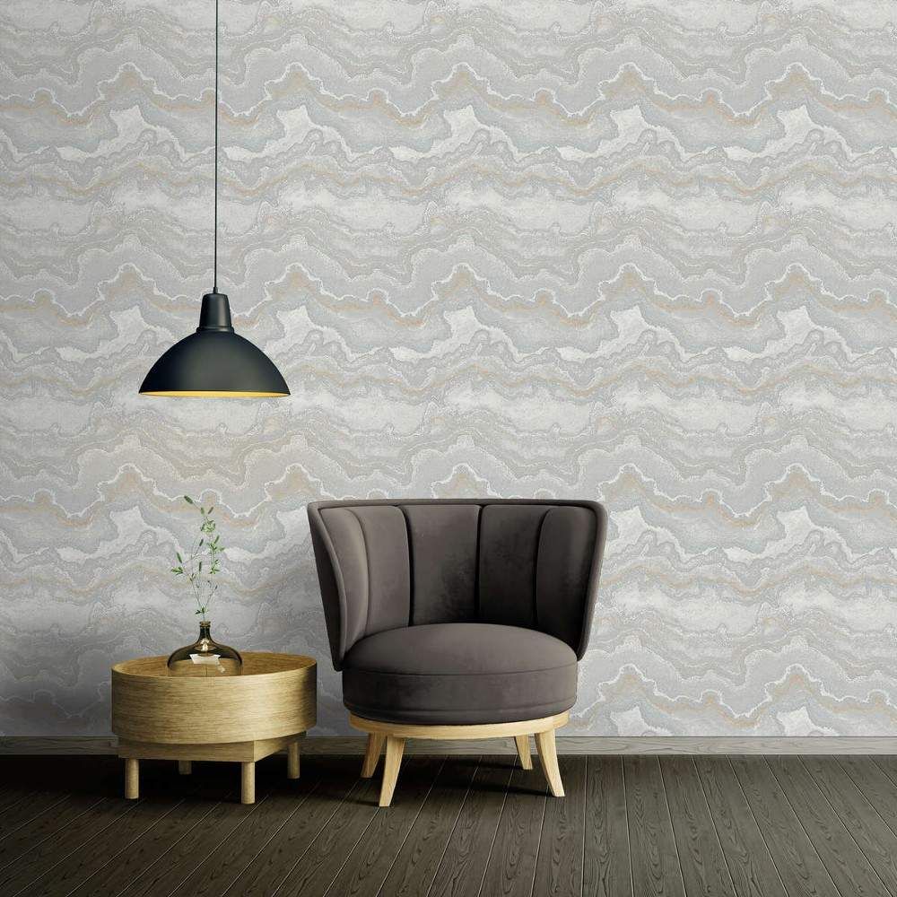 Lava Marble Silver Grey & Metallic Gold Stories of Life Collection Wallpaper 39659-5