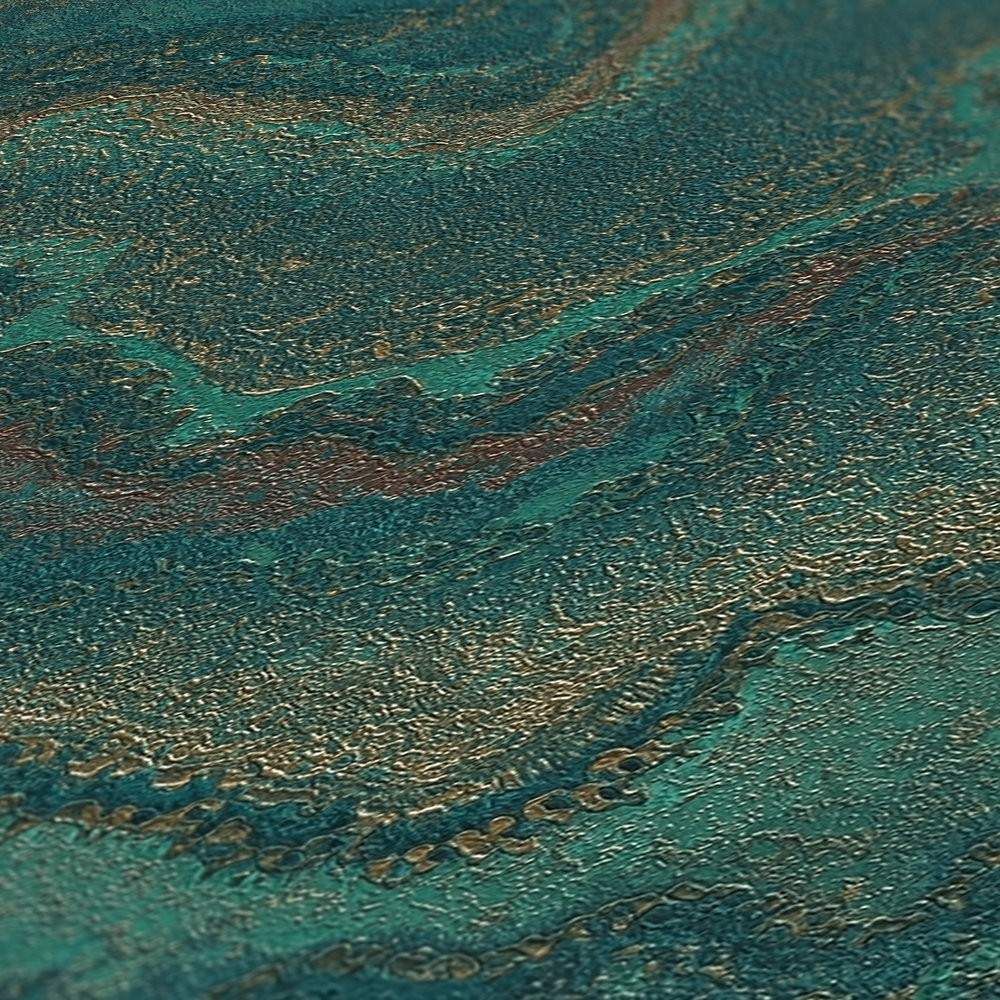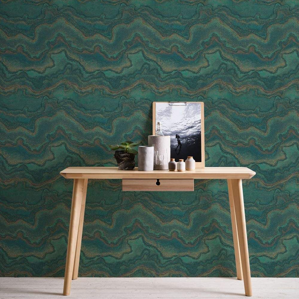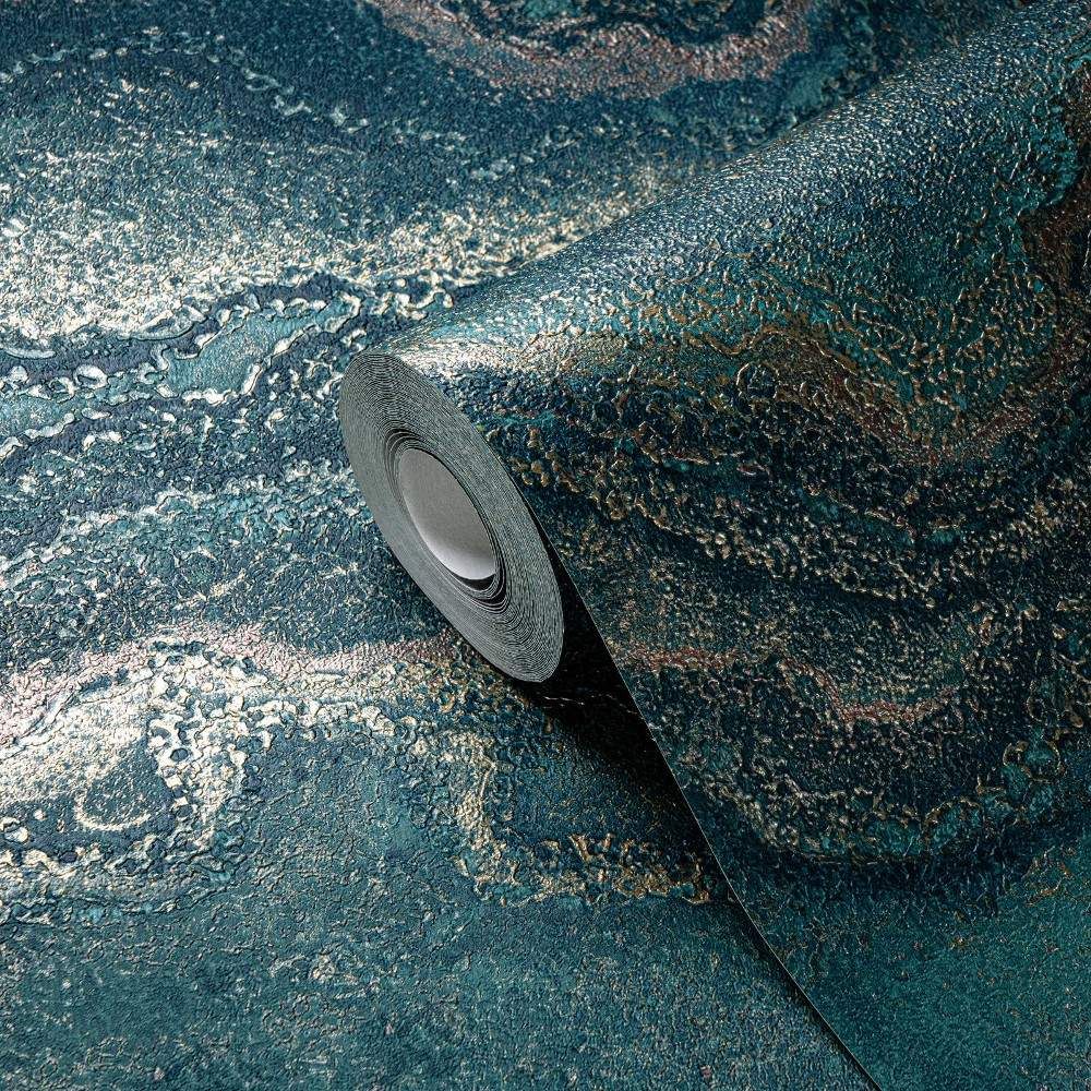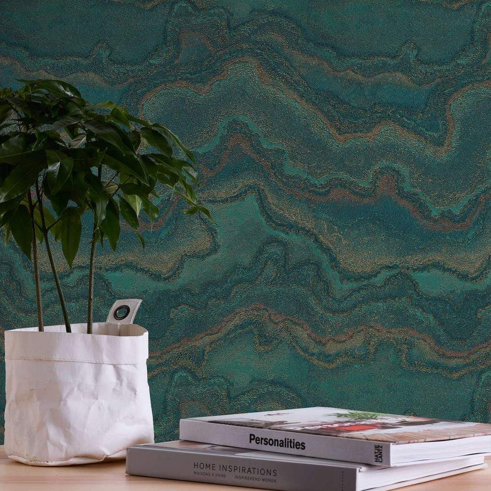 Lava Marble Teal & Metallic Gold Stories of Life Collection Wallpaper 39659-3