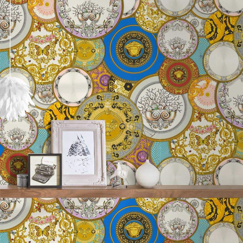 Part of the Les Etoiles de la Mer collection, this wallpaper boasts an eclectic mix of multicolored plates inspired from the home design. This motif features a combination of plates from the Barocco, Le Jardin and Blue Prestige Gala collections.