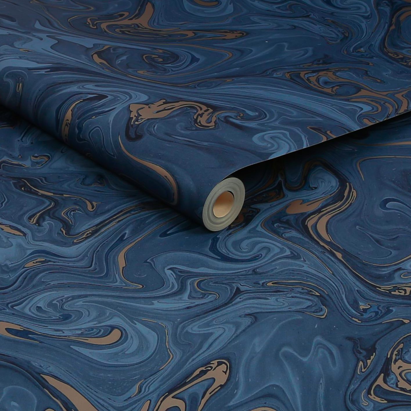Part of the Fresco collection, this wallpaper is adorned with metallic gold accents that beautifully complement the starless navy blue colorway. Like lava flowing over ancient frescoes, it exudes an opulence that is both timeless and modern.