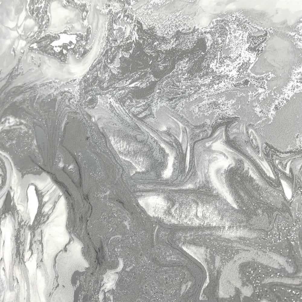 Liquid Swirl Marble Grey & Metallic Silver Wallpaper 6355