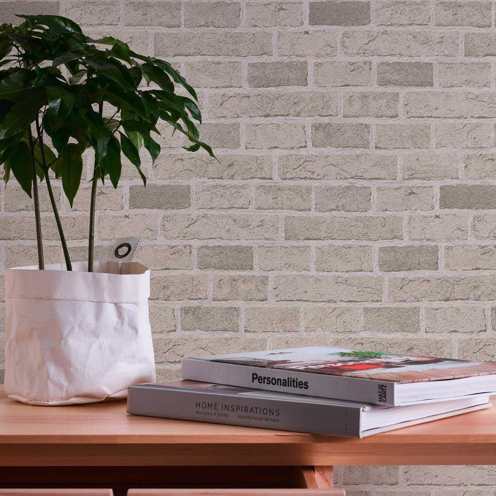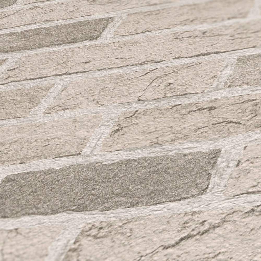 A faux sandstone brick design featuring a bright and fresh neutral color palette.