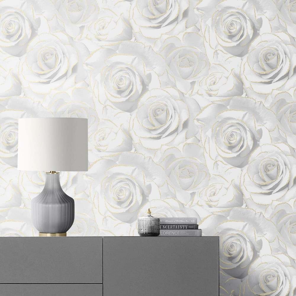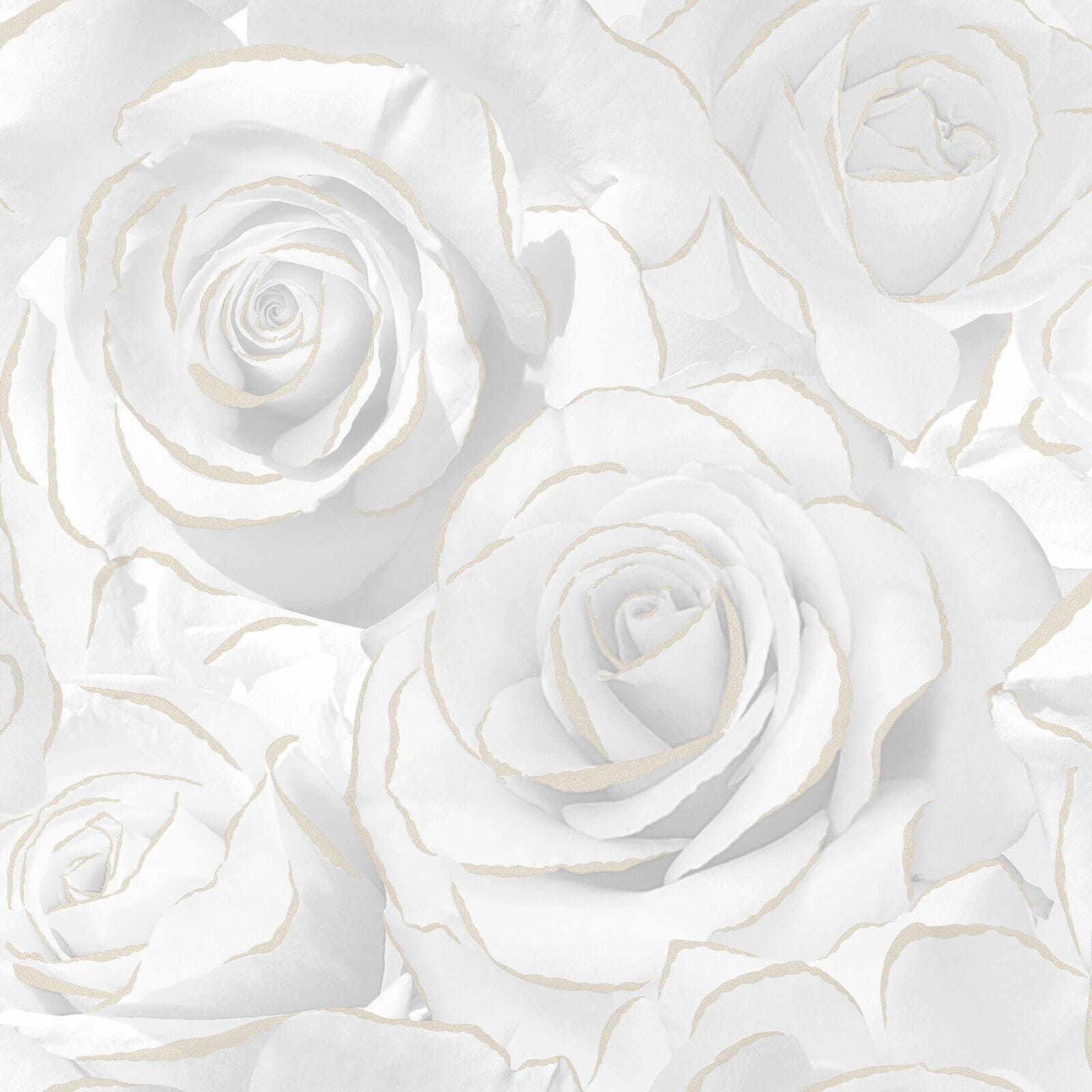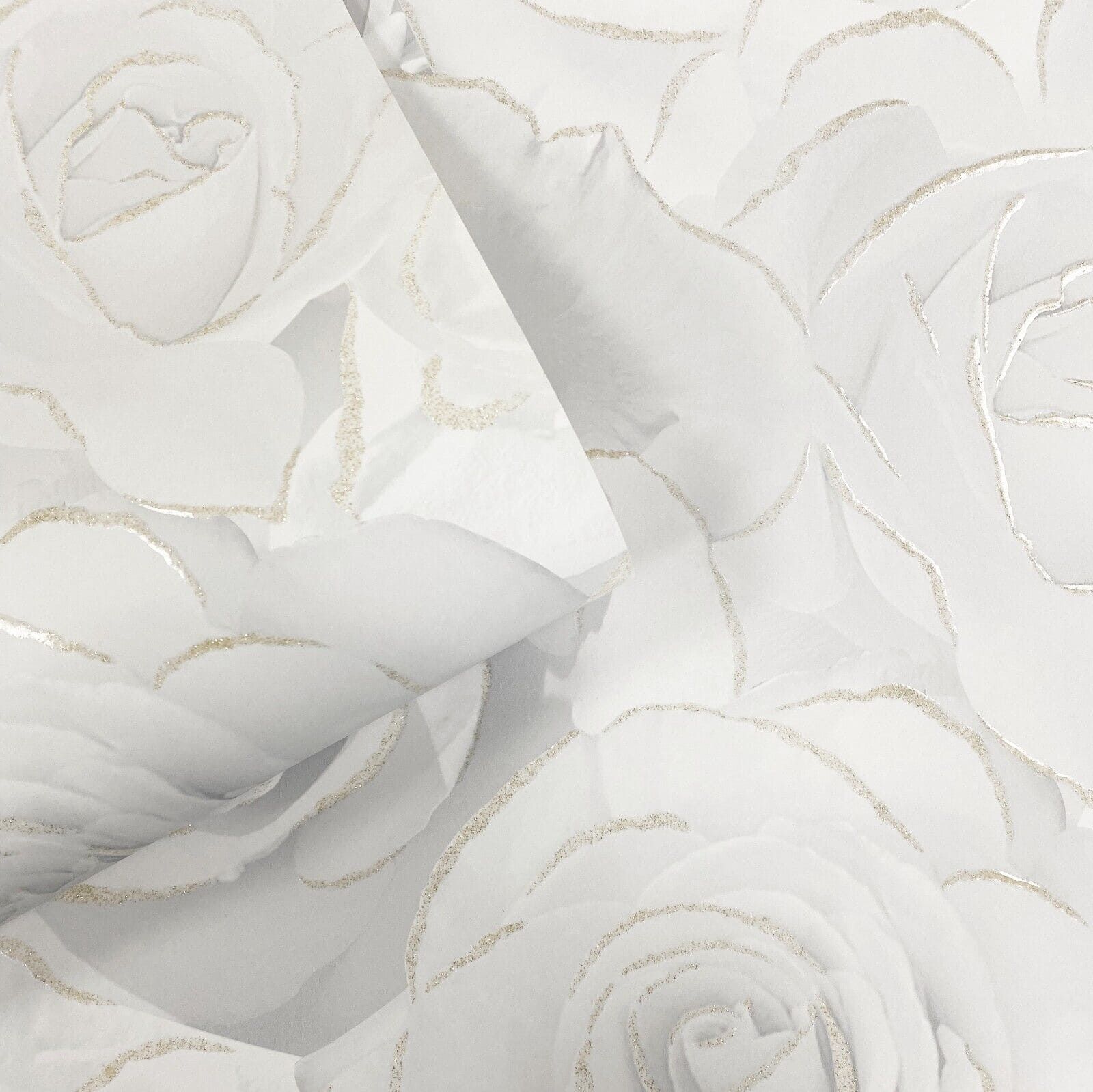 Madison Rose Floral White and Gold Glitter Wallpaper 139525