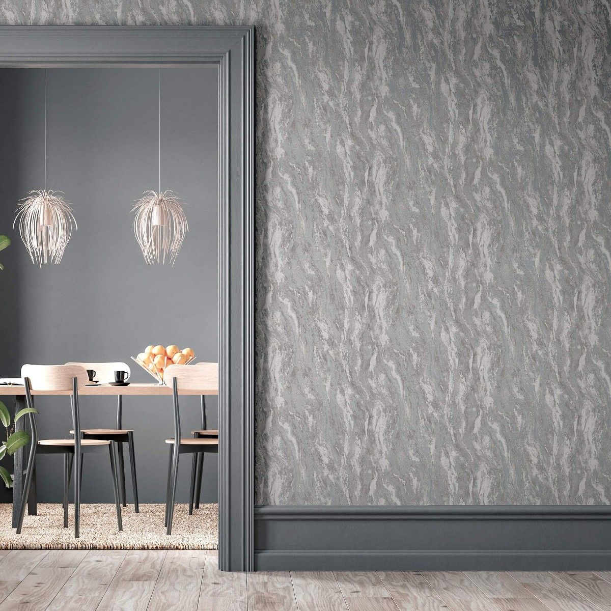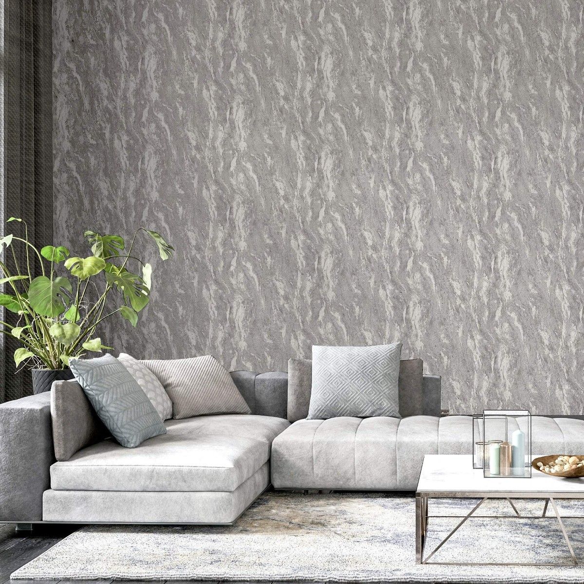 Marble Luxe Texture Metallic Pewter Wallpaper 299102